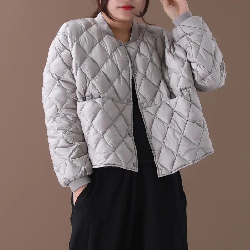 Легкий и тонкий удерживающий тепло короткий пуховик с пухом, бейсбольная форма, куртка, в корейском стиле, оверсайз