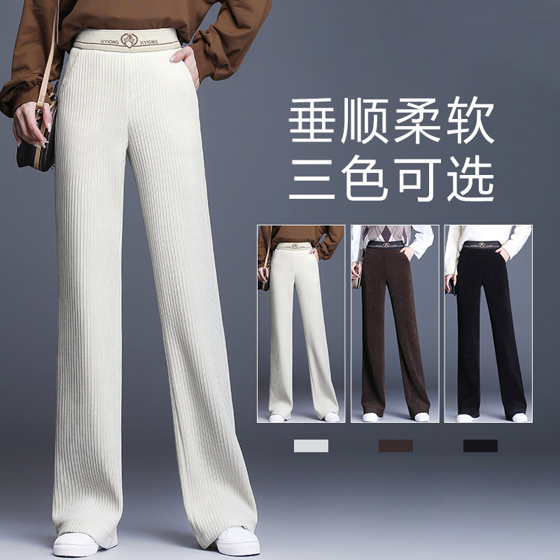 Флисовые вельветовые демисезонные штаны, белые леггинсы, свободный прямой крой, коллекция 2021, большой размер, высокая талия