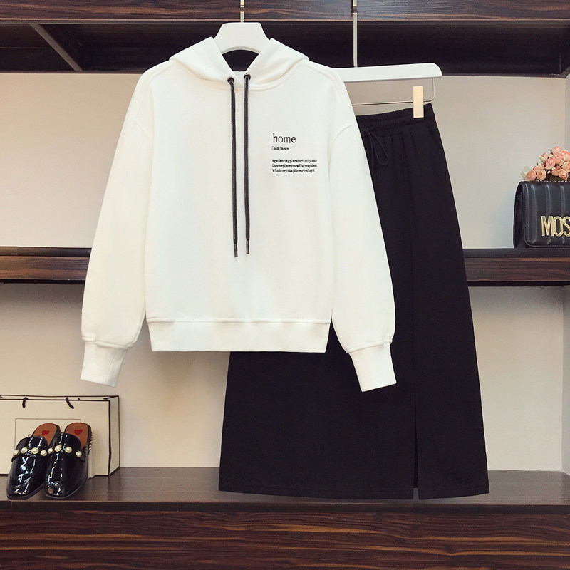 Осенняя толстовка с капюшоном, юбка, комплект, большой размер, коллекция 2021, подходит для полных девушек, в западном стиле, свободный крой