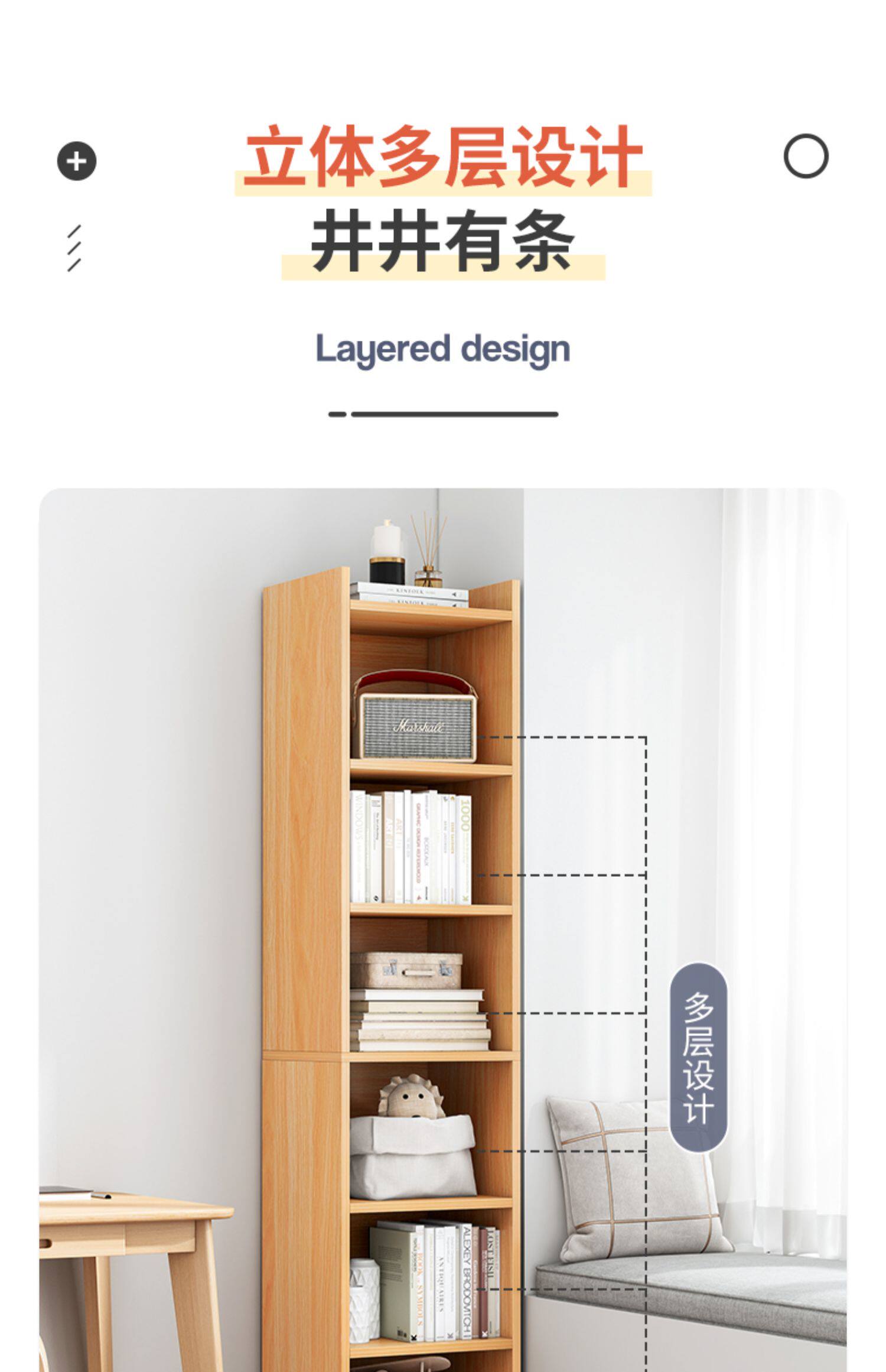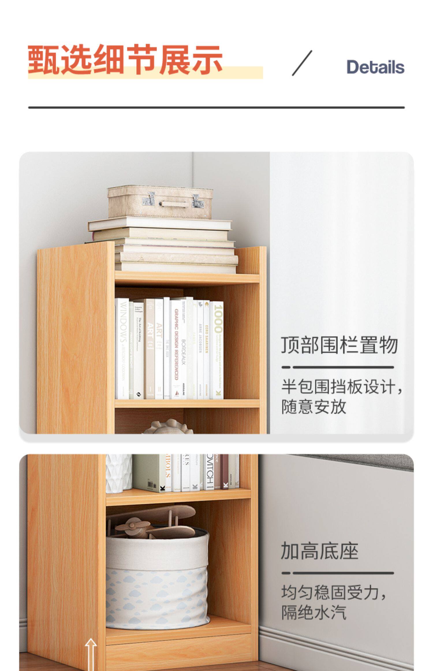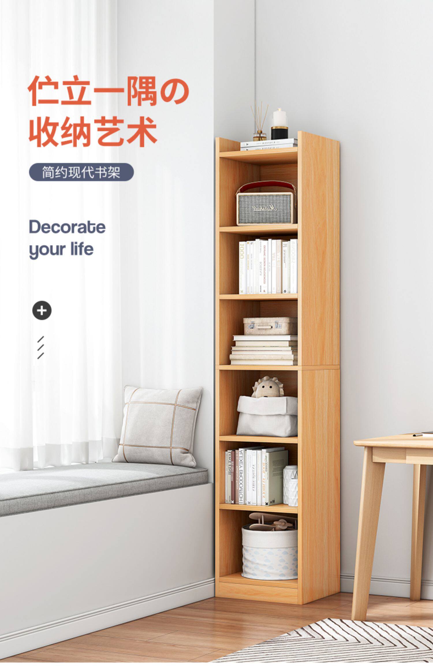 Цветовой книжный шкаф с твердым деревом Узкий шкаф библиотека