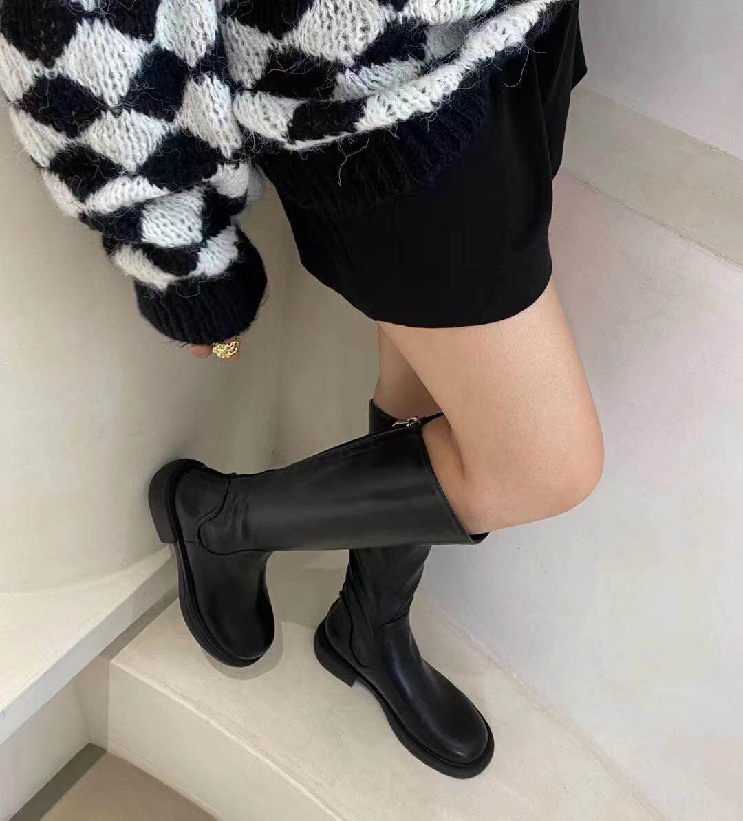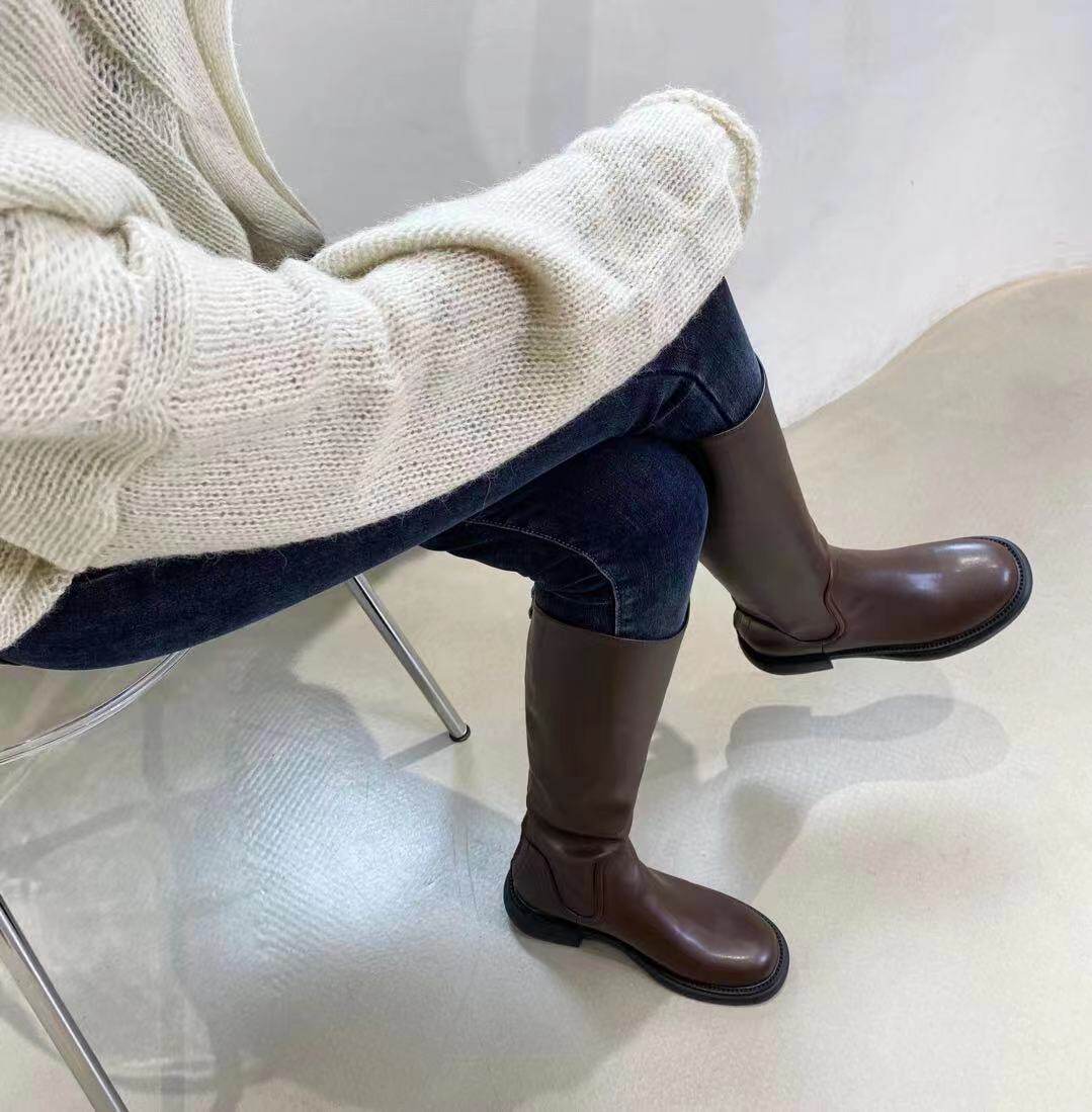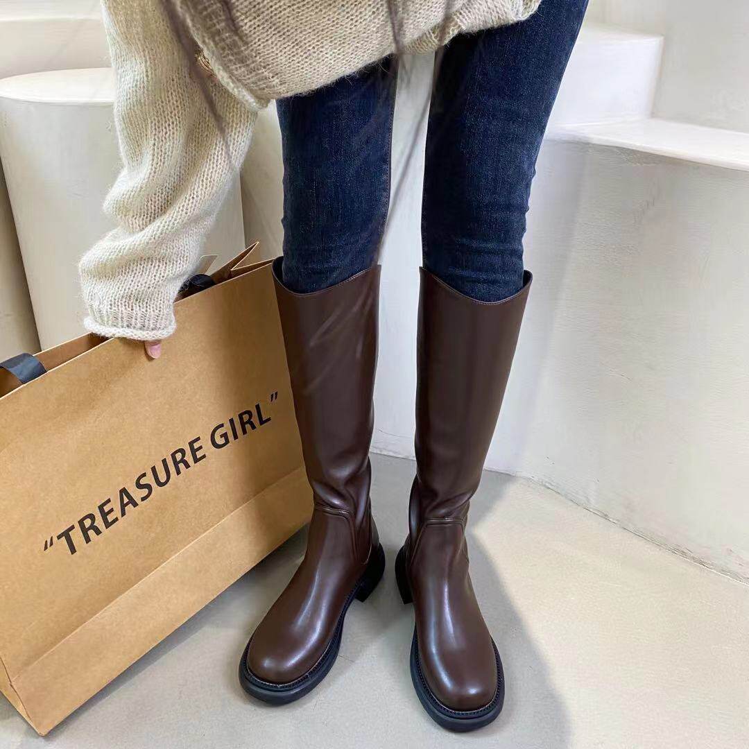 Martens, коричневые демисезонные белые высокие сапоги в английском стиле, в британском стиле, французский ретро стиль