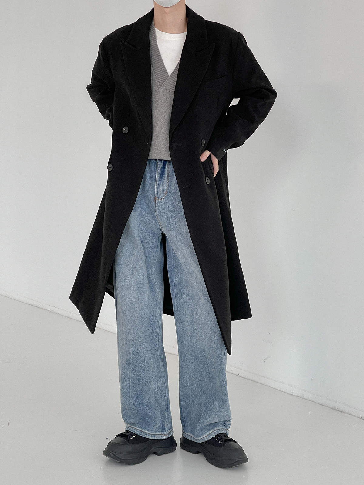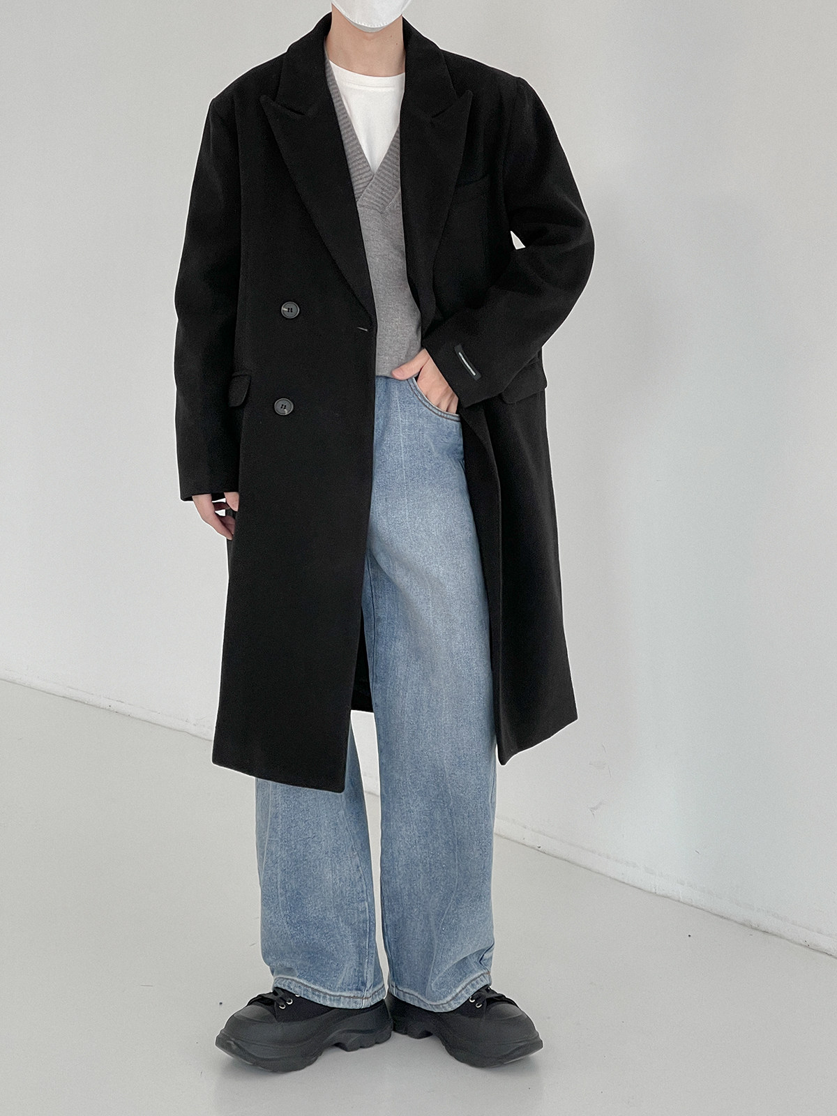 Демисезонное шерстяное пальто, длинный удерживающий тепло плащ, увеличенная толщина, средней длины, в корейском стиле