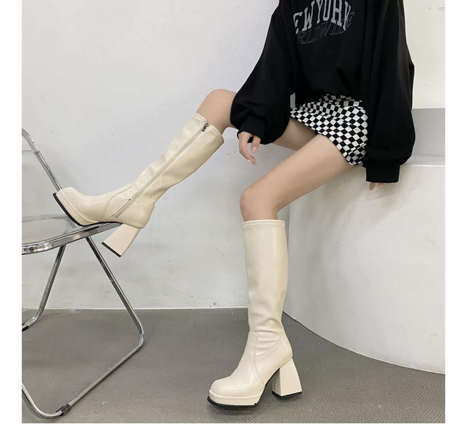 Tide, модные универсальные высокие сапоги в английском стиле, коллекция 2021, осенние, тренд сезона, в британском стиле