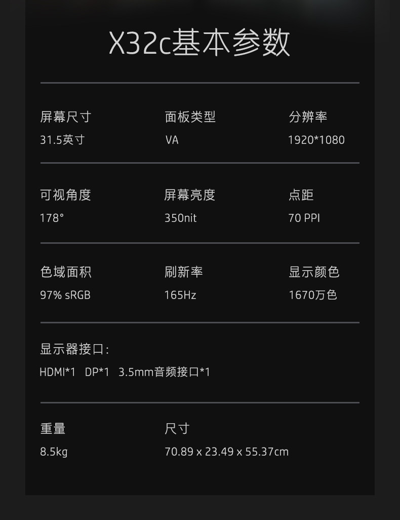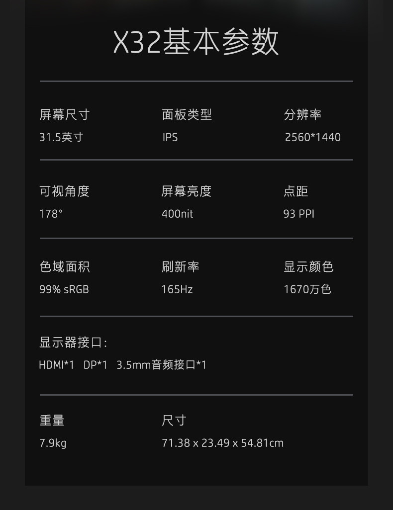 - 【X32】 31,5 -Inch/2k/165 Гц/1 мс быстрый ответ