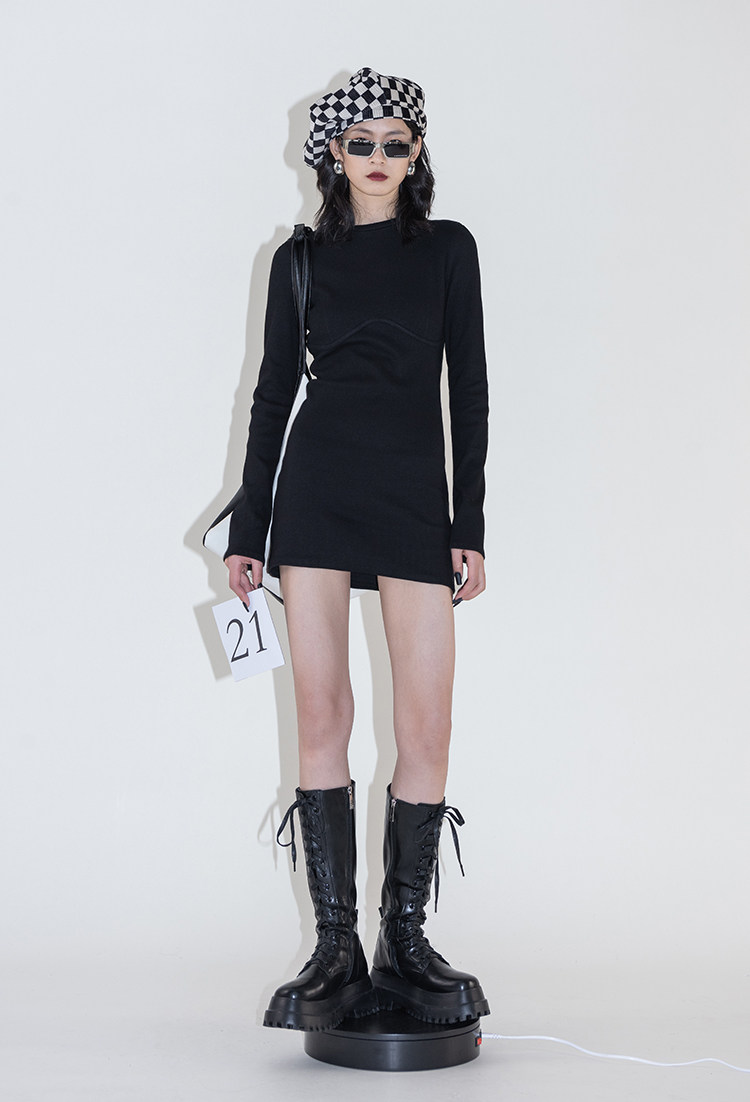 Оригинальное дизайнерское черное платье, приталенная юбка