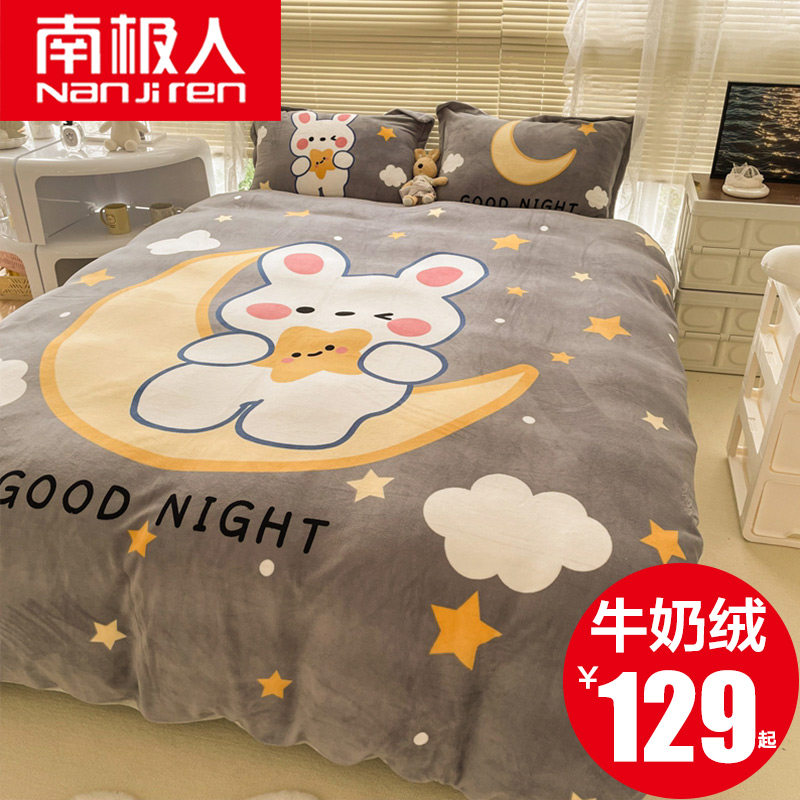 Зимний мультяшный комплект, двусторонная флисовая утепленная простыня, пододеяльник, 4 предмета, 3 предмета