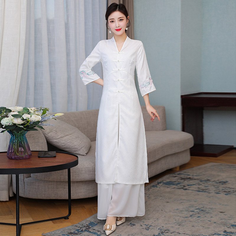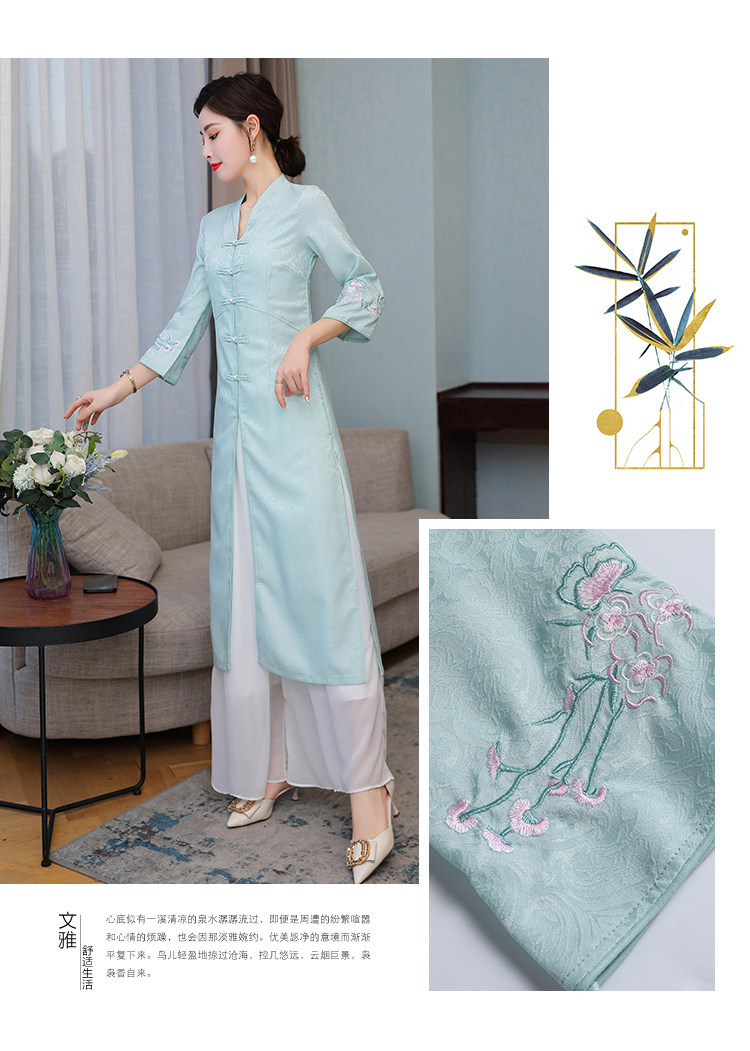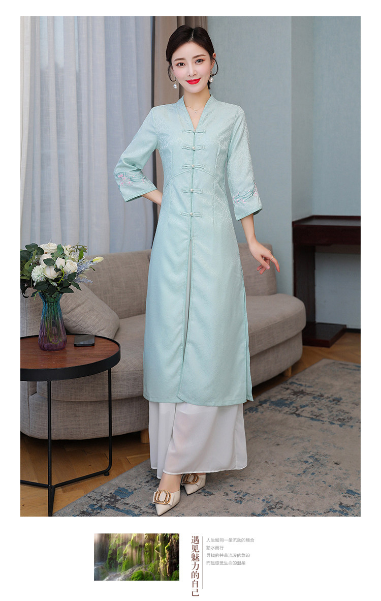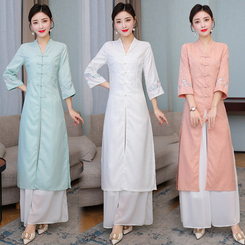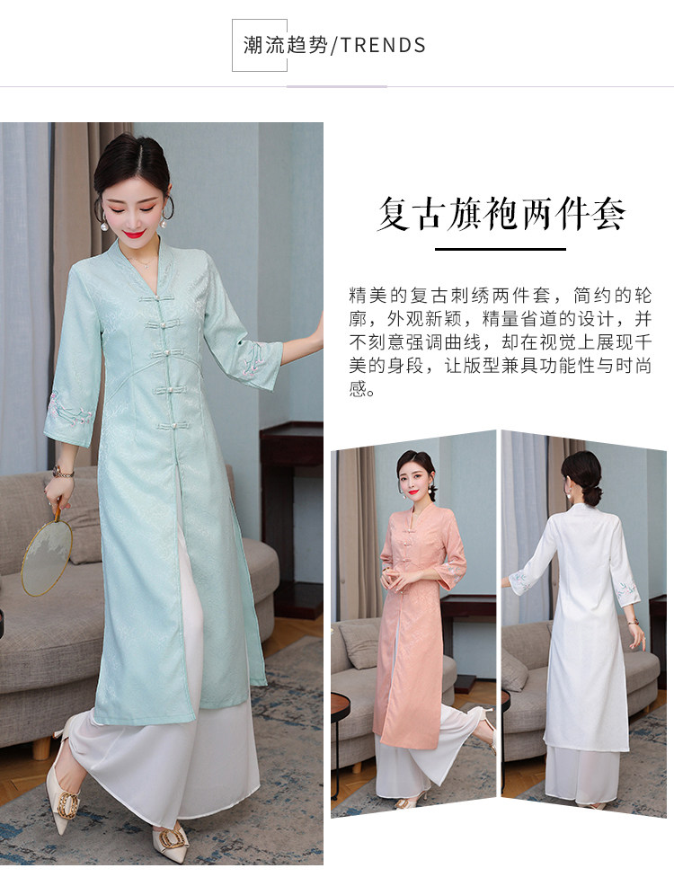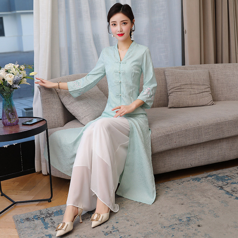 Летнее ципао, ретро длинная юбка, коллекция 2021, с вышивкой, средней длины