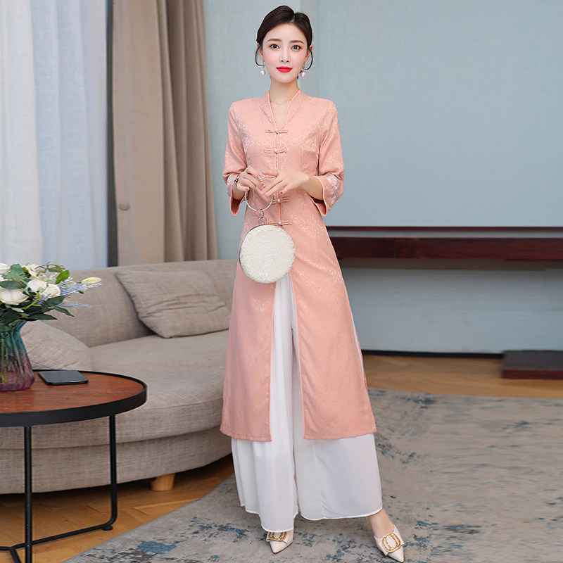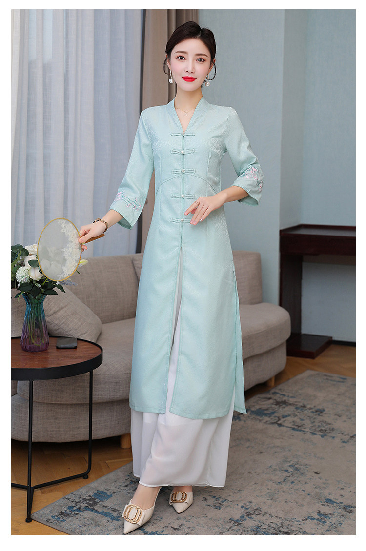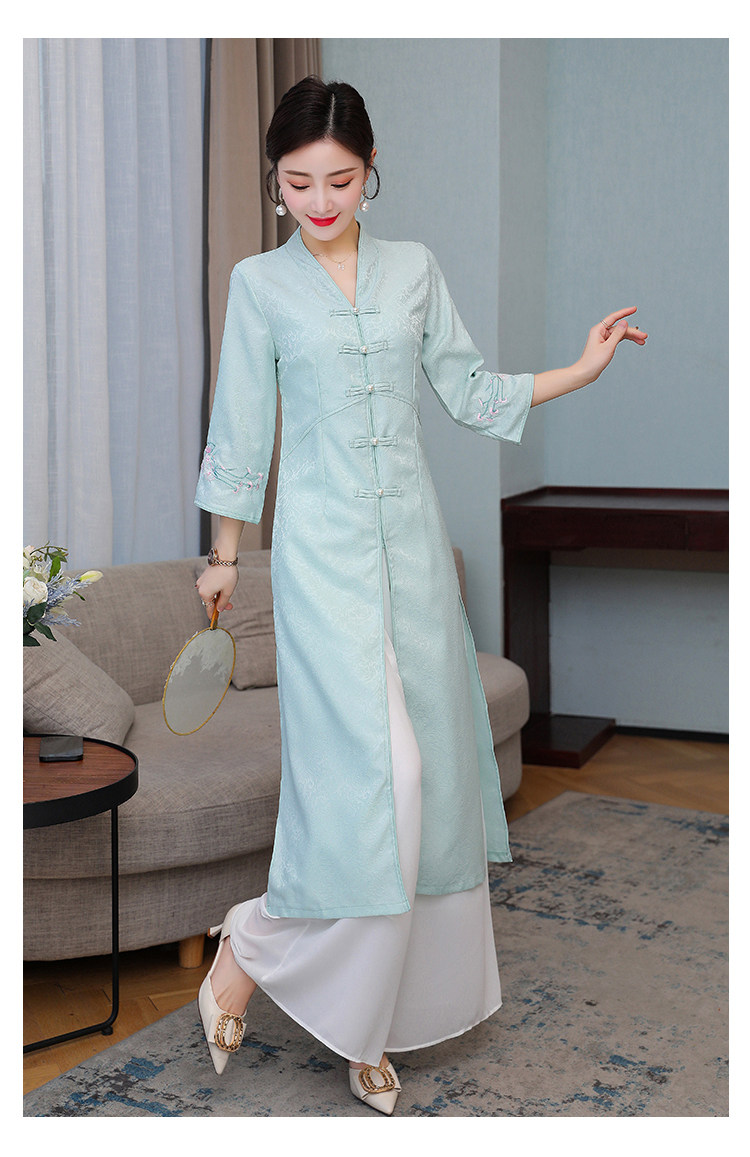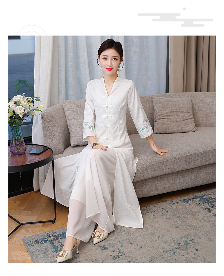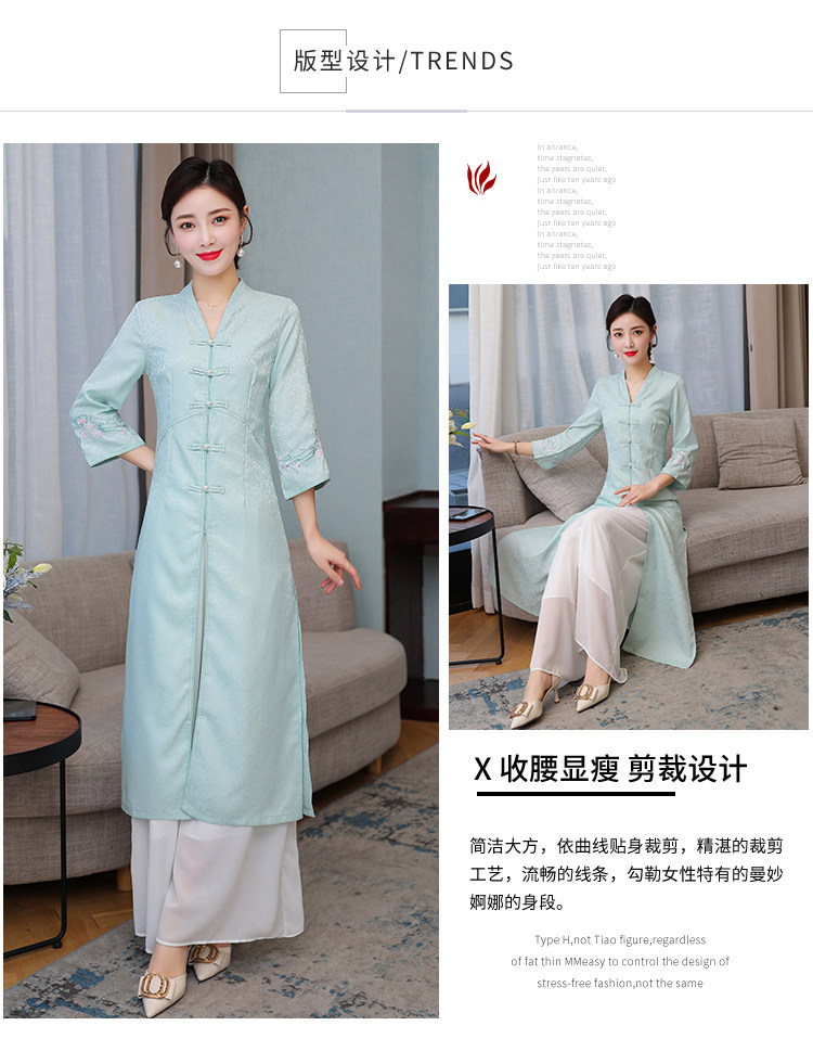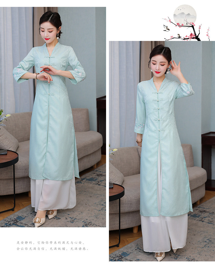 Летнее ципао, ретро длинная юбка, коллекция 2021, с вышивкой, средней длины