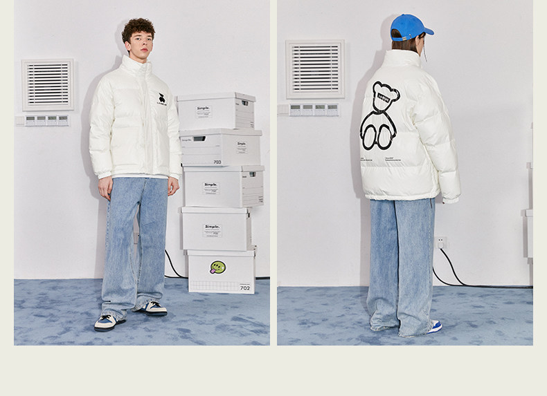 Трендовый пуховик, куртка, комплект, предпродажа, с медвежатами, оверсайз