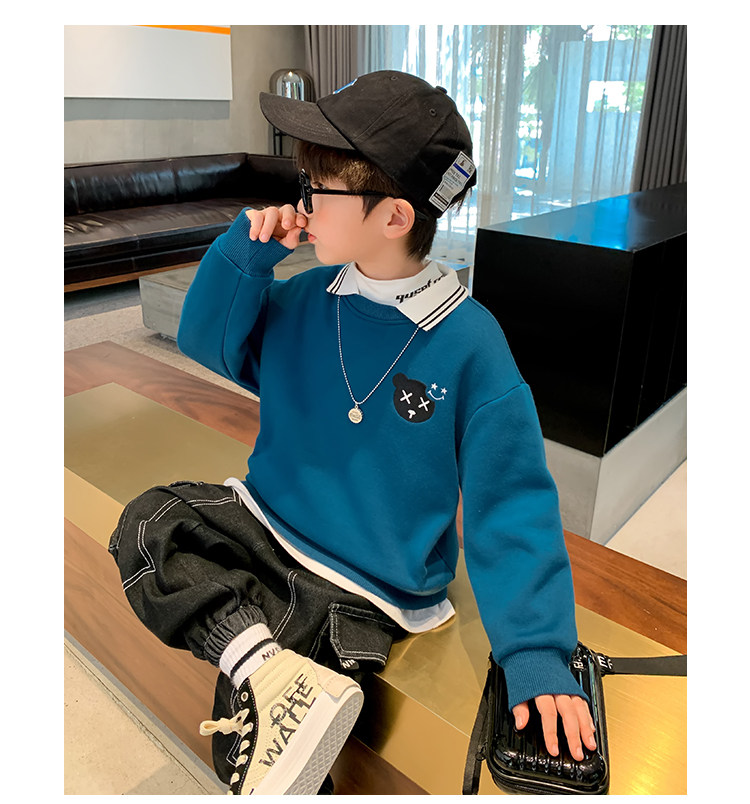 Толстовка для мальчиков, утепленная зимняя детская футболка polo, детская одежда