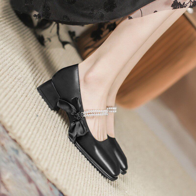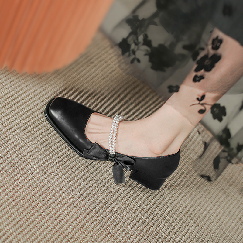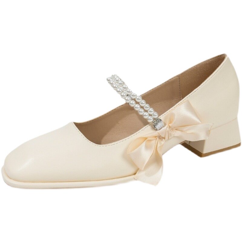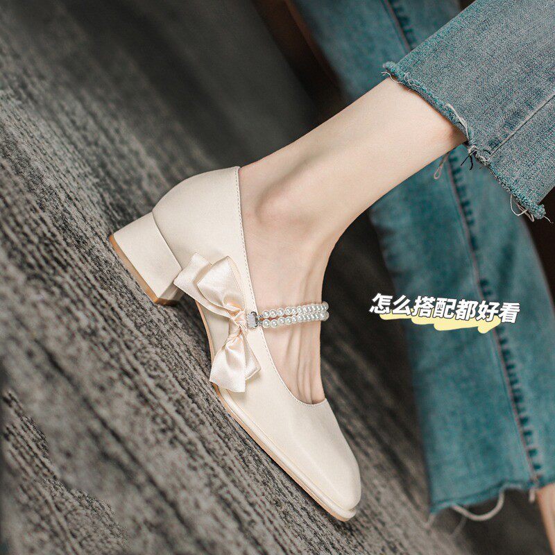 Французская высокая туфли темперамент обуви 2023 Весна Нью -Мэрижэнь Женская туфли ретро жемчуг в пятке волшебных туфель на пятке