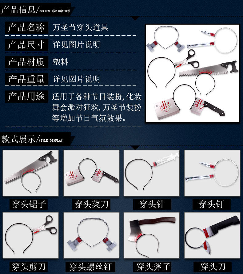 1 нож для прокалывания головы на Хэллоуин, топор для прокалывания головы, гвозди для прокалывания головы, реквизит для выступлений, реквизит для косплея