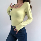 Осеннее боди, цветной базовый приятный телу лонгслив, коллекция 2021, европейский стиль, облегающий крой, квадратный вырез