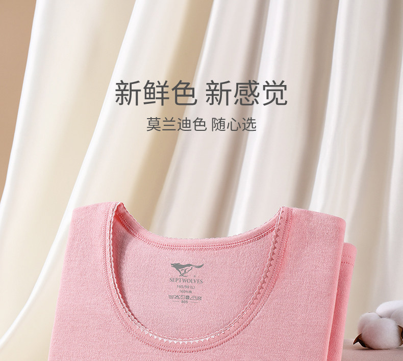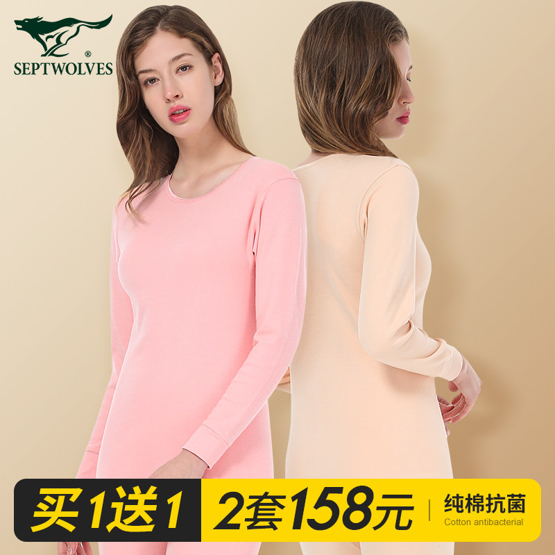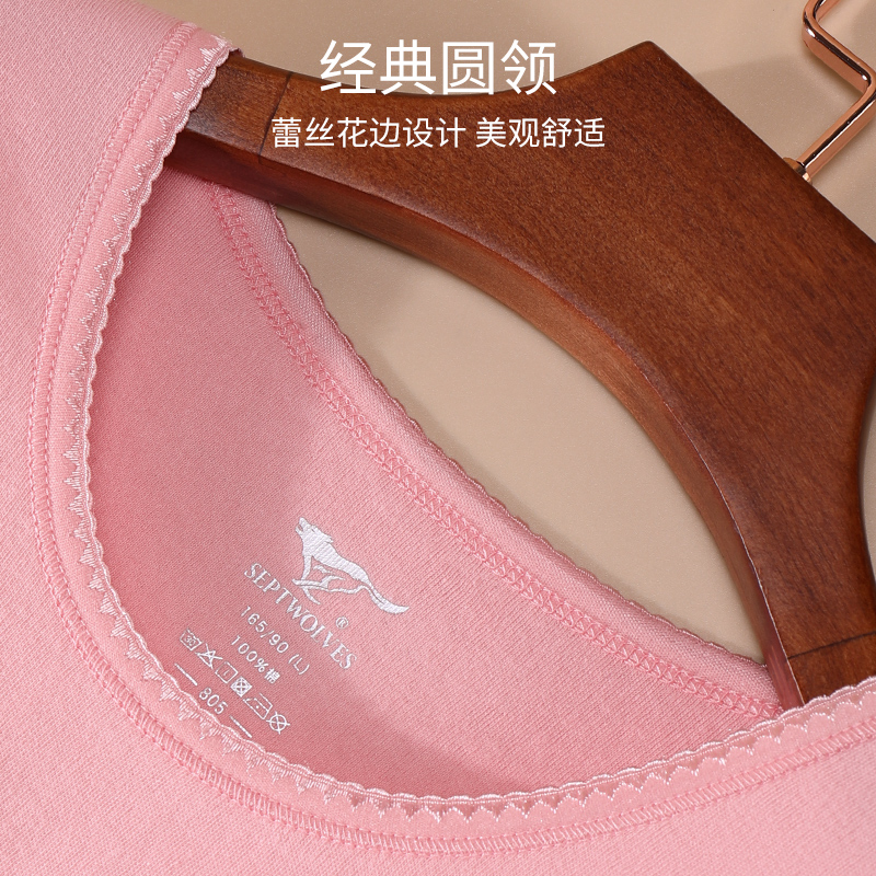 Septwolves, термобелье, штаны, хлопковый тонкий комплект, кружевной свитер с круглым воротником, хлопковая утепленный лонгслив, удерживающее тепло нижнее белье
