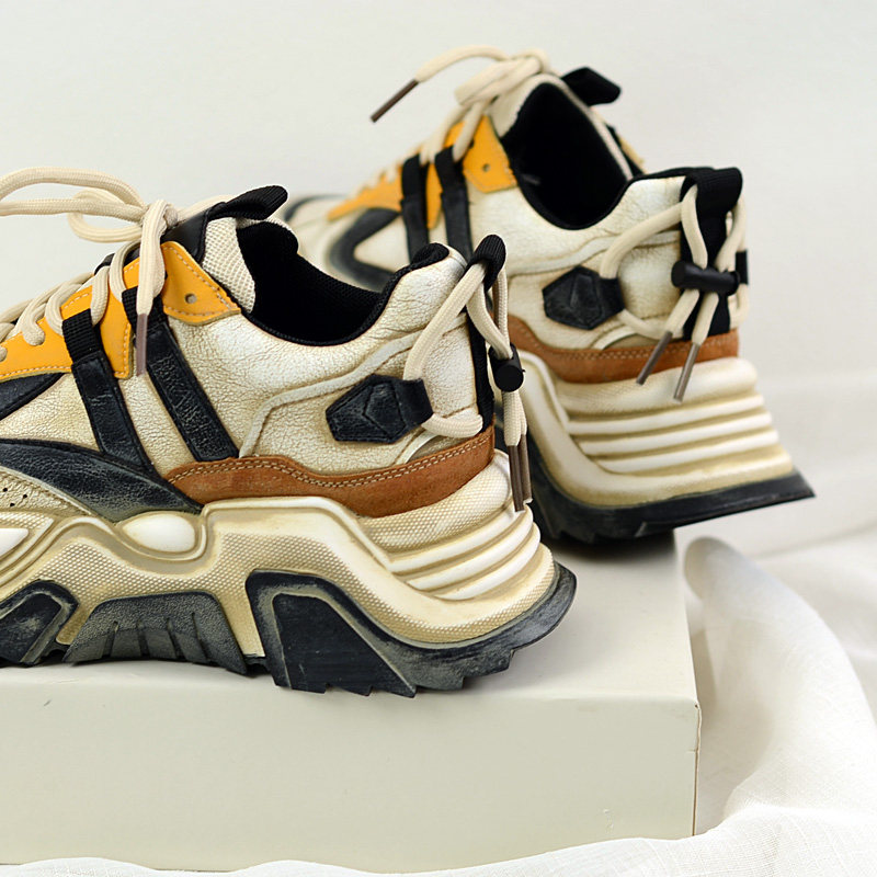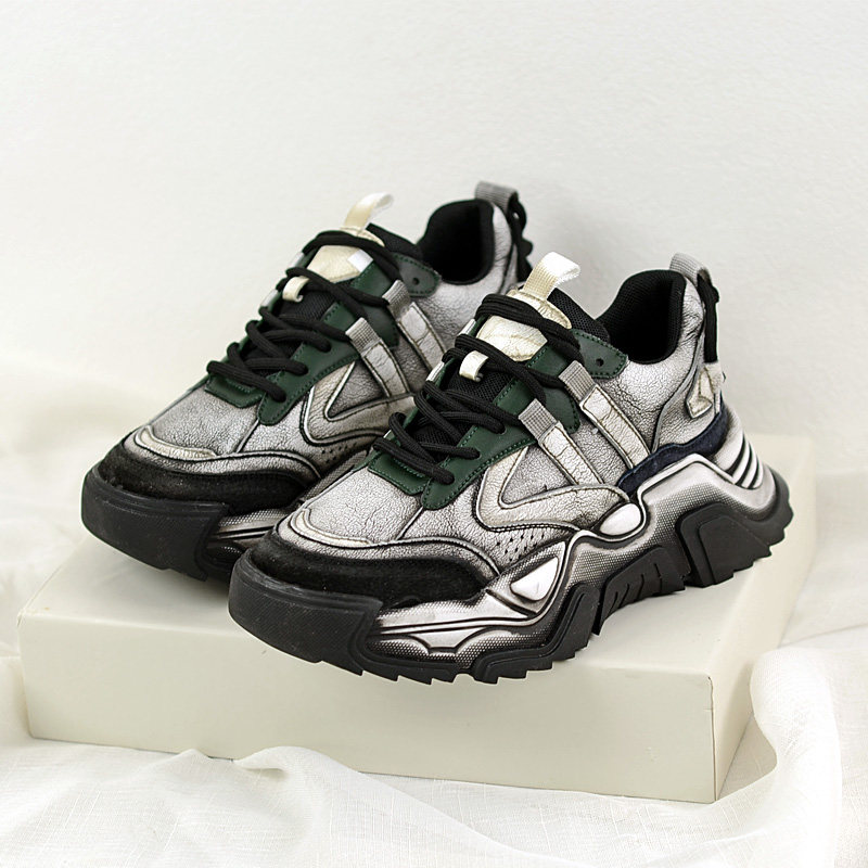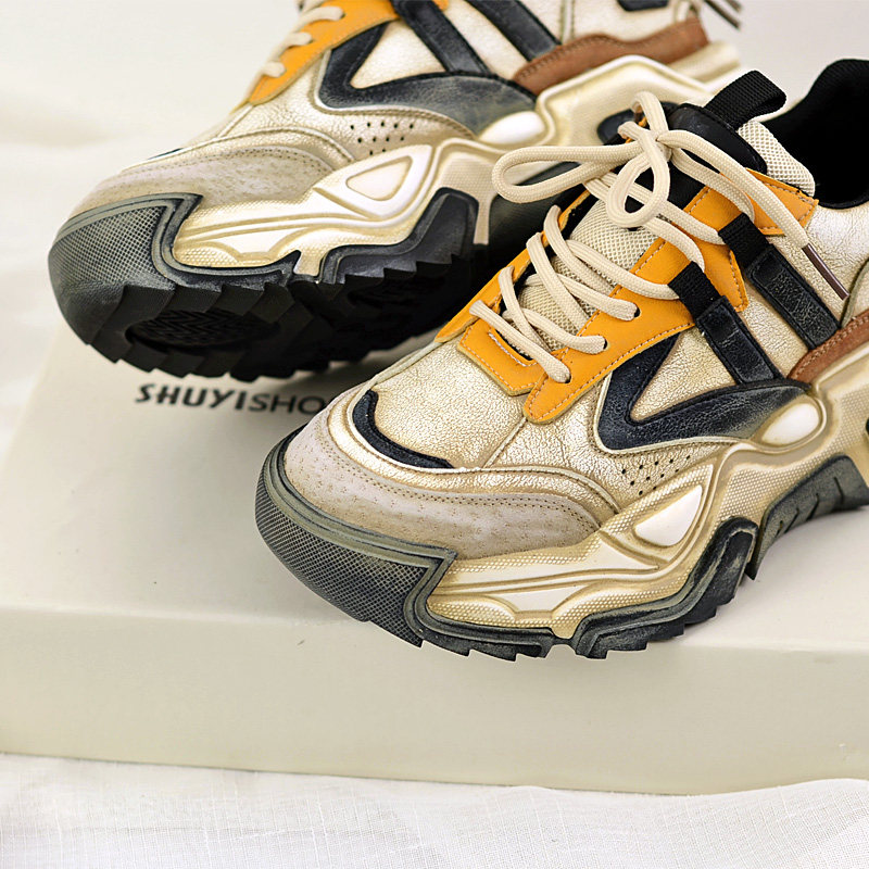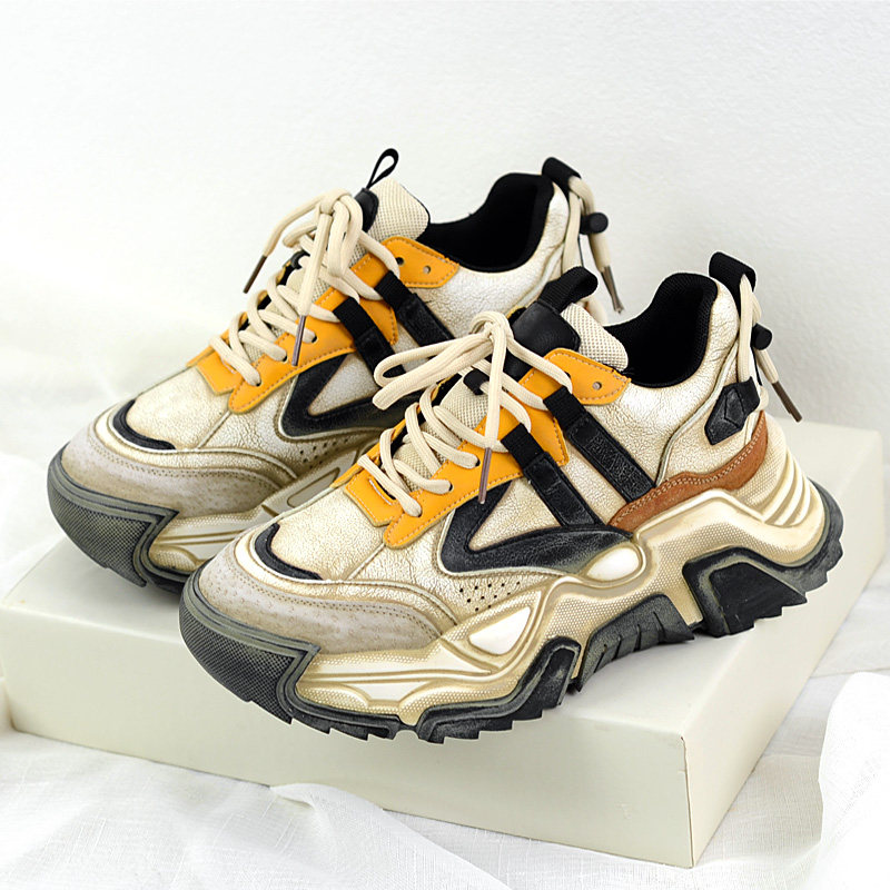 Модные брендовые туфли для папы на толстой подошве, увеличивающие рост, в стиле ретро, интернет-знаменитости для женщин, весна 2023, новые женские туфли, повседневные кожаные кроссовки с цветными блоками