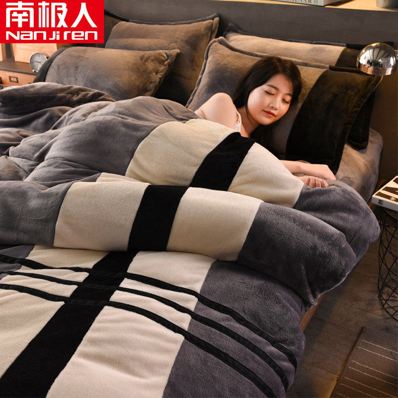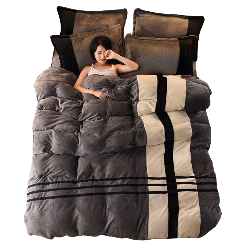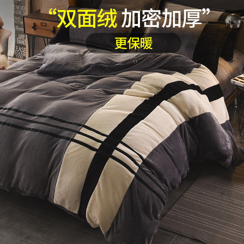 Зимний двусторонний флисовый коралловый комплект, фланелевая простыня, пододеяльник, 4 предмета, увеличенная толщина