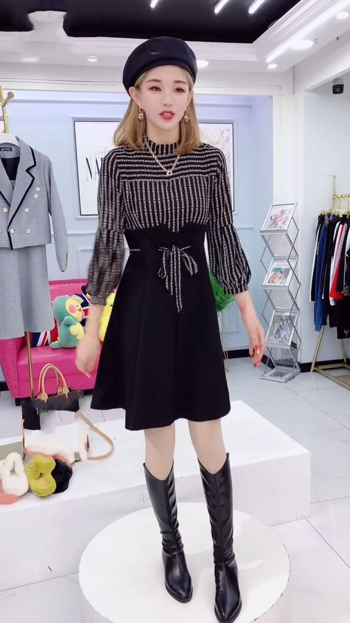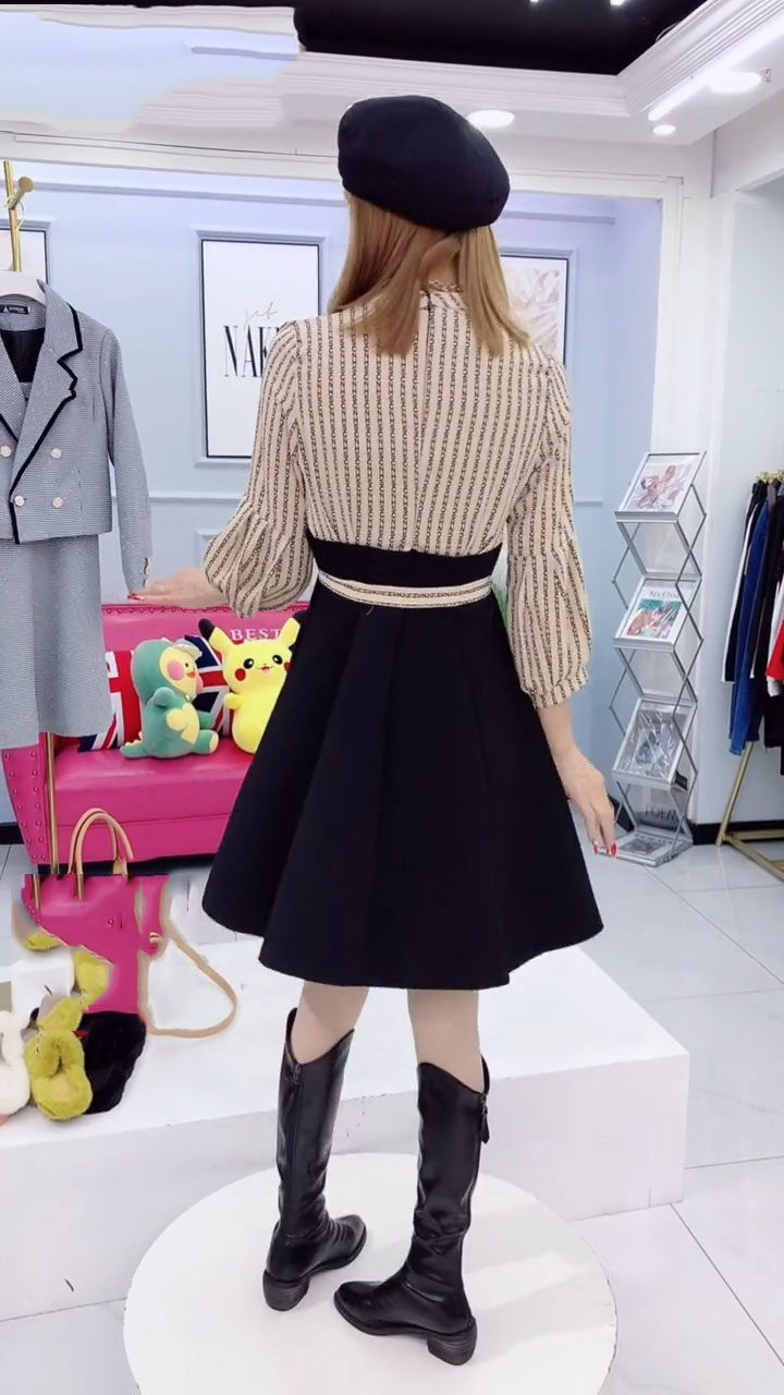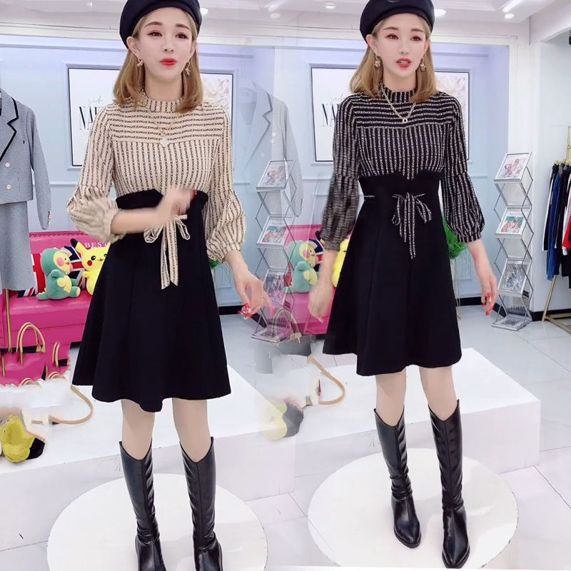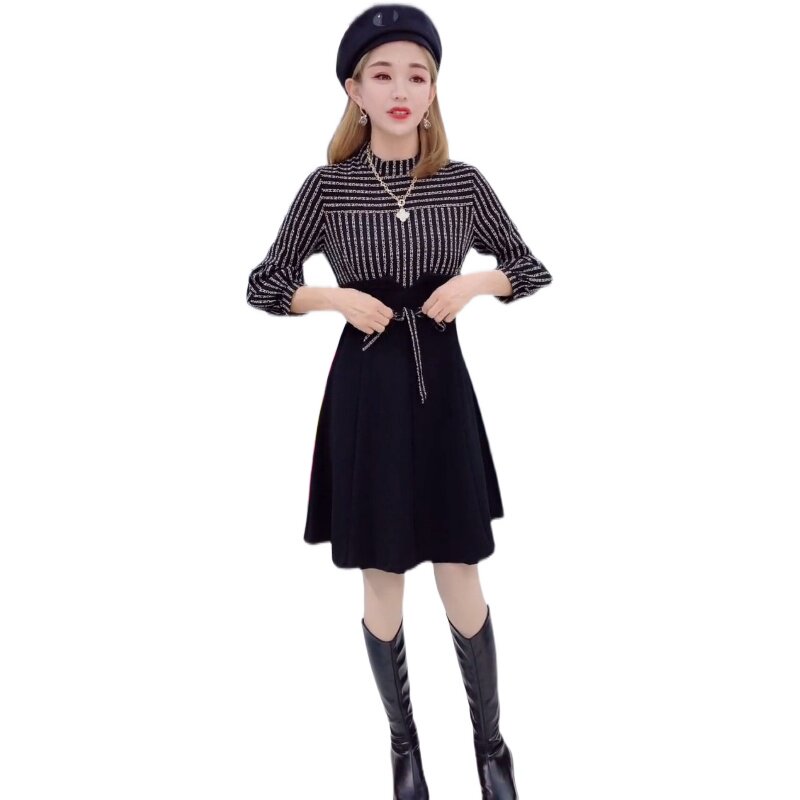 Весеннее платье, длинный фонарь, базовый комплект, 2023, тренд сезона, яркий броский стиль, в корейском стиле, с рукавом, А-силуэт