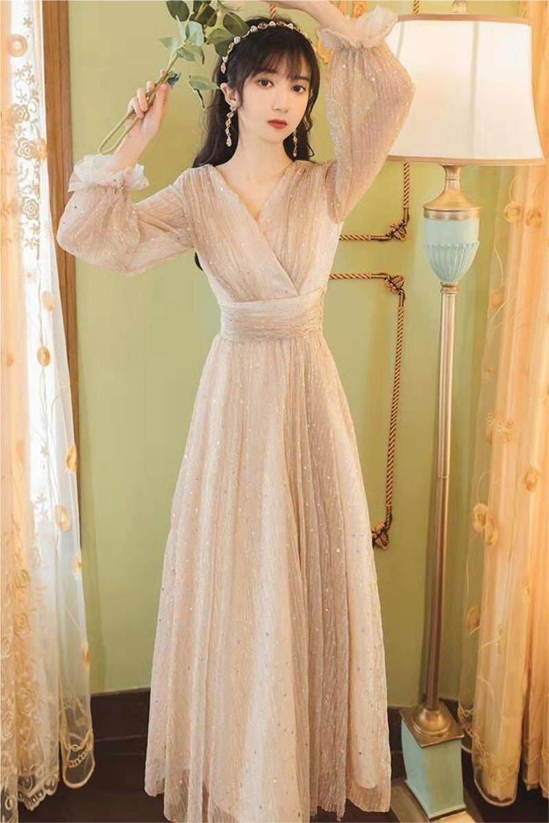 Шифоновое весеннее небольшое дизайнерское вечернее платье, тренд сезона, V-образный вырез, французский стиль, подходит для подростков