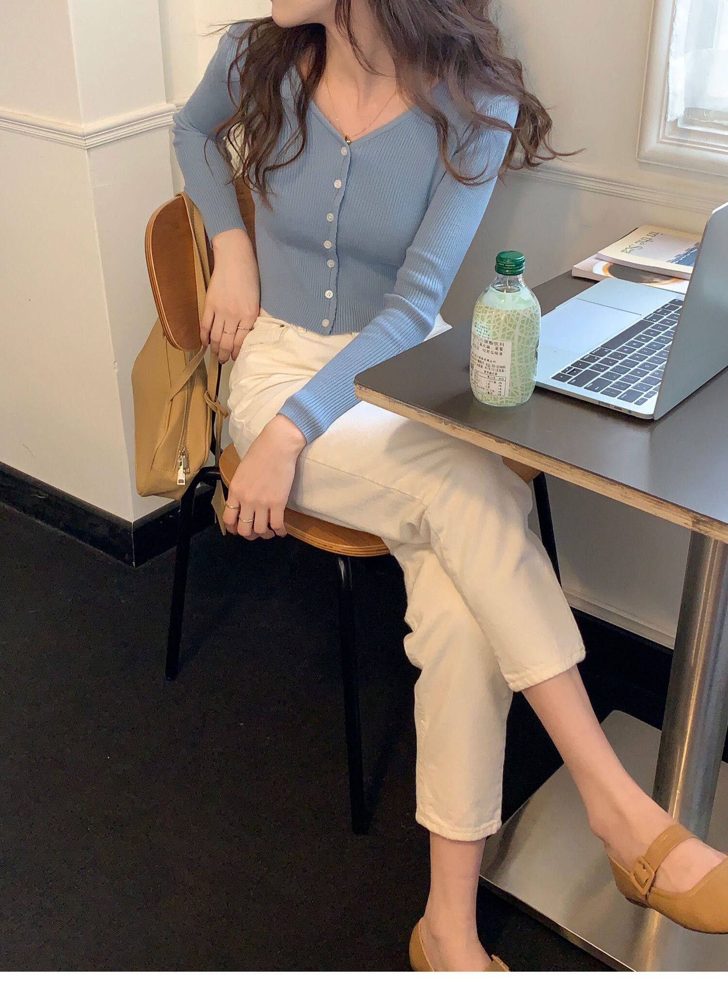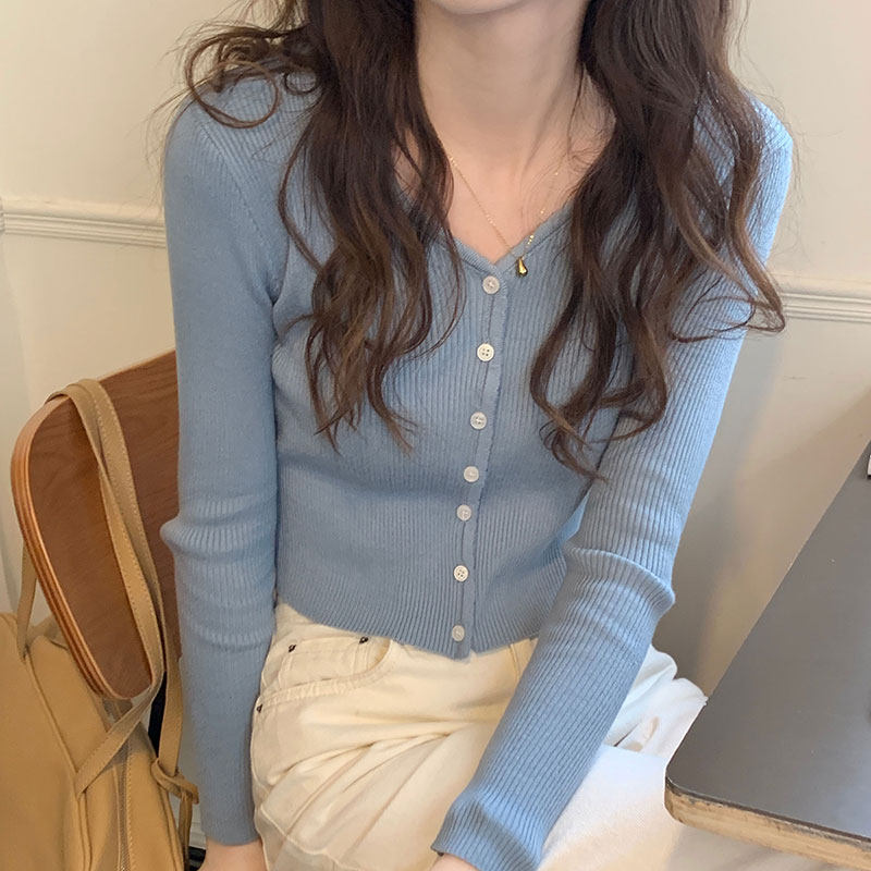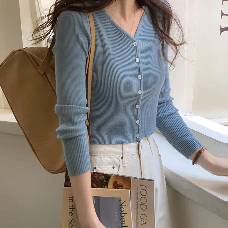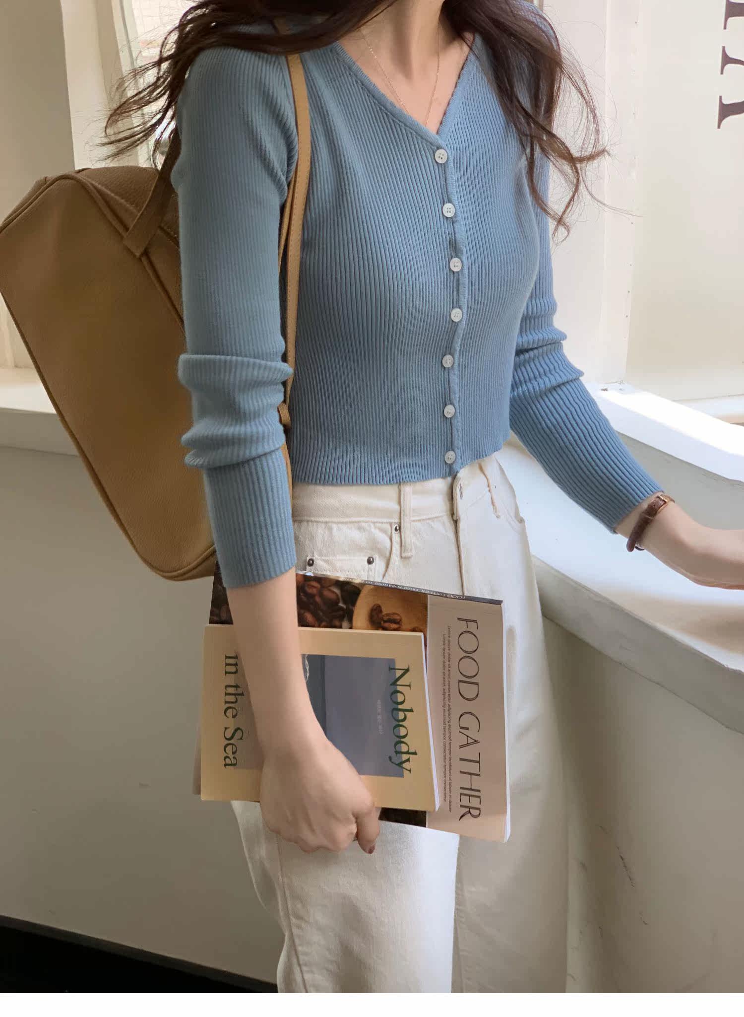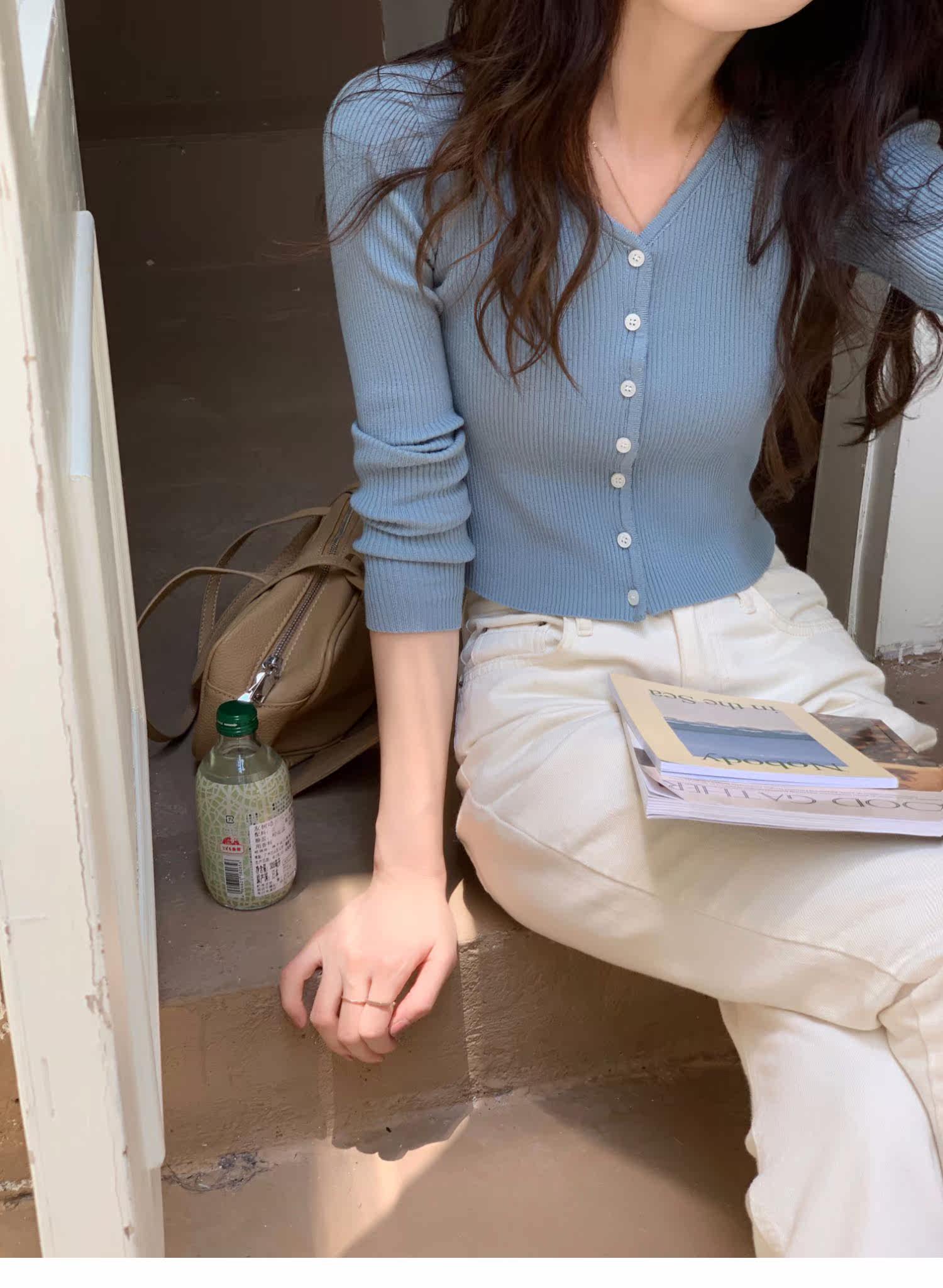 Синий свитер, куртка, кардиган, подходит для подростков, V-образный вырез