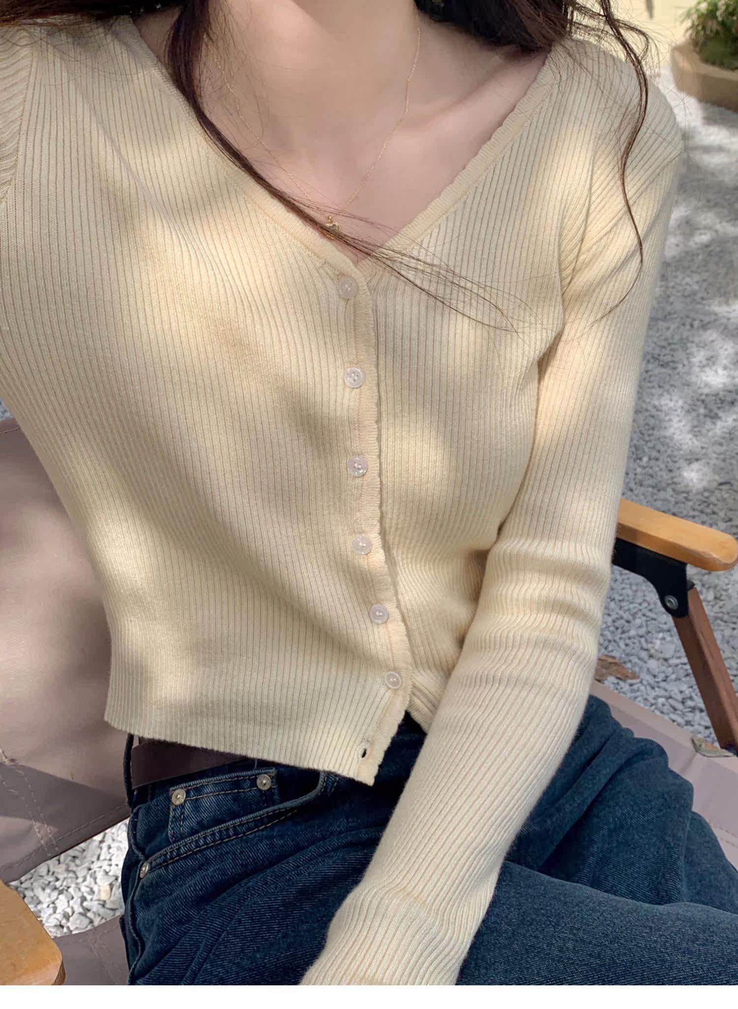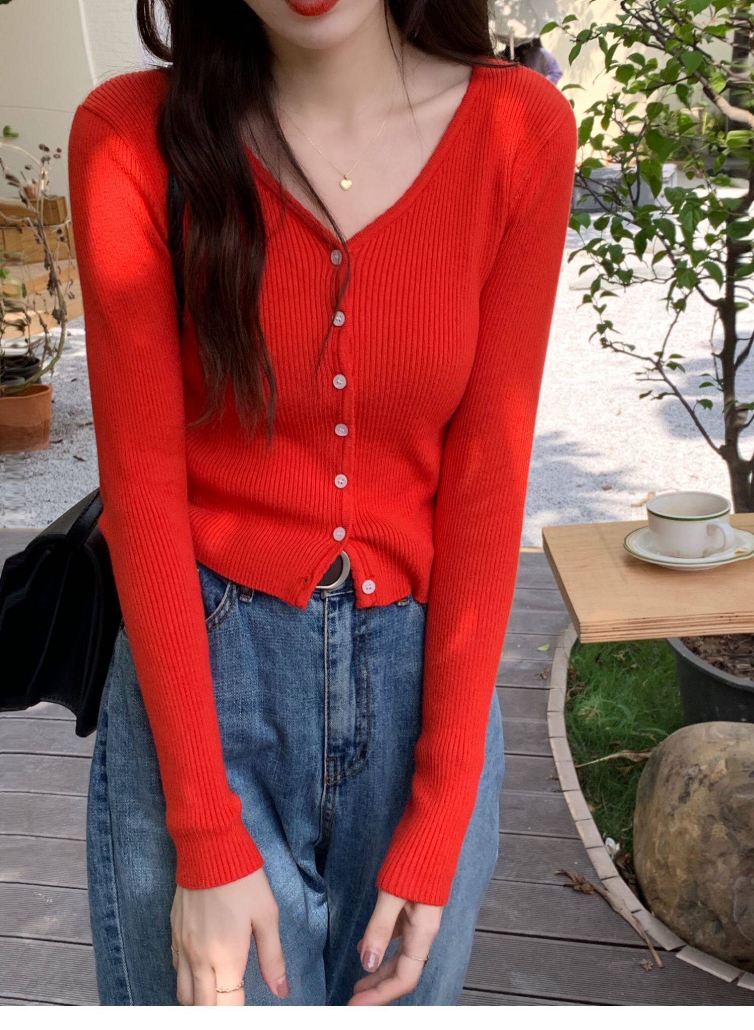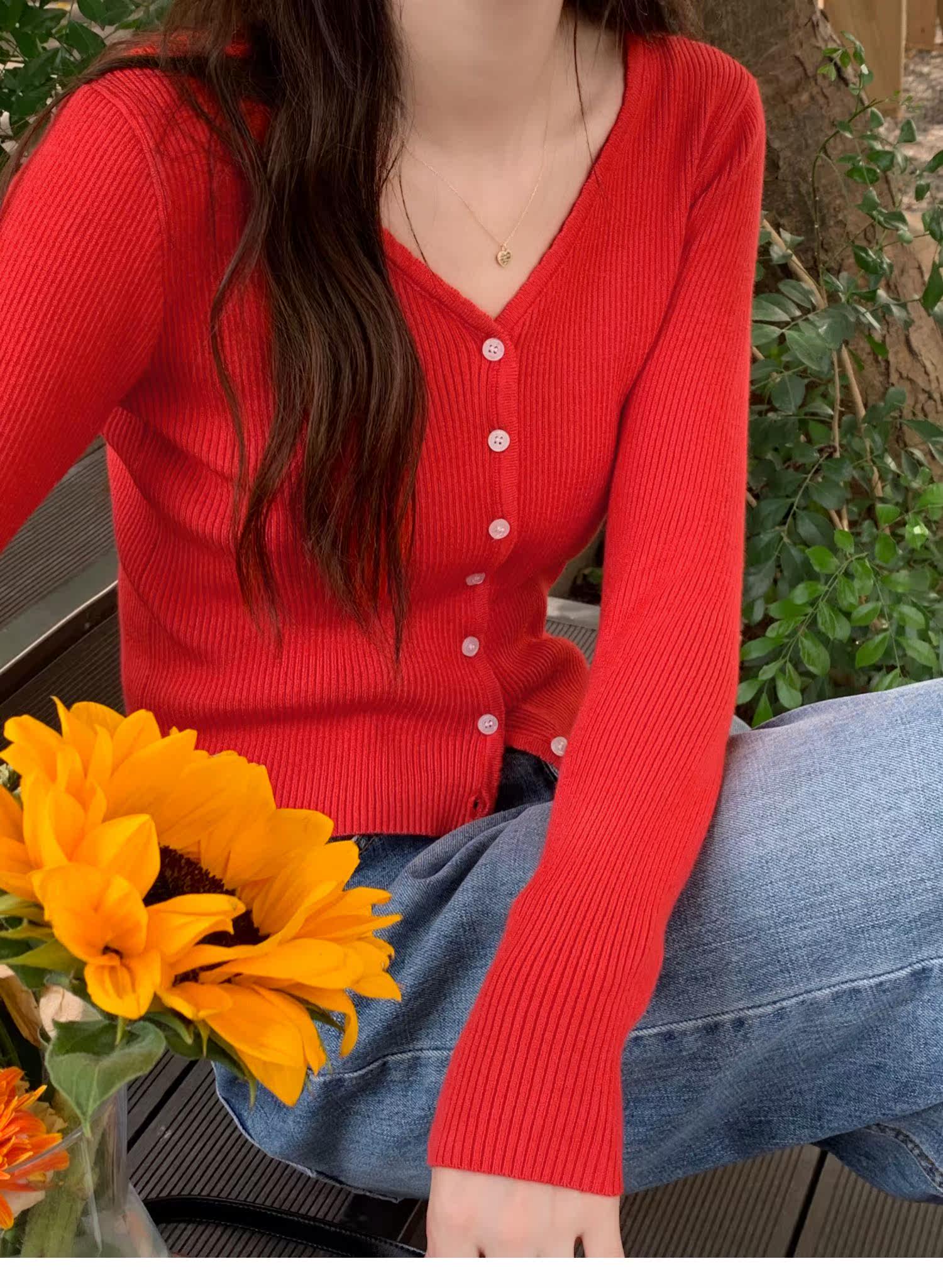 Синий свитер, куртка, кардиган, подходит для подростков, V-образный вырез
