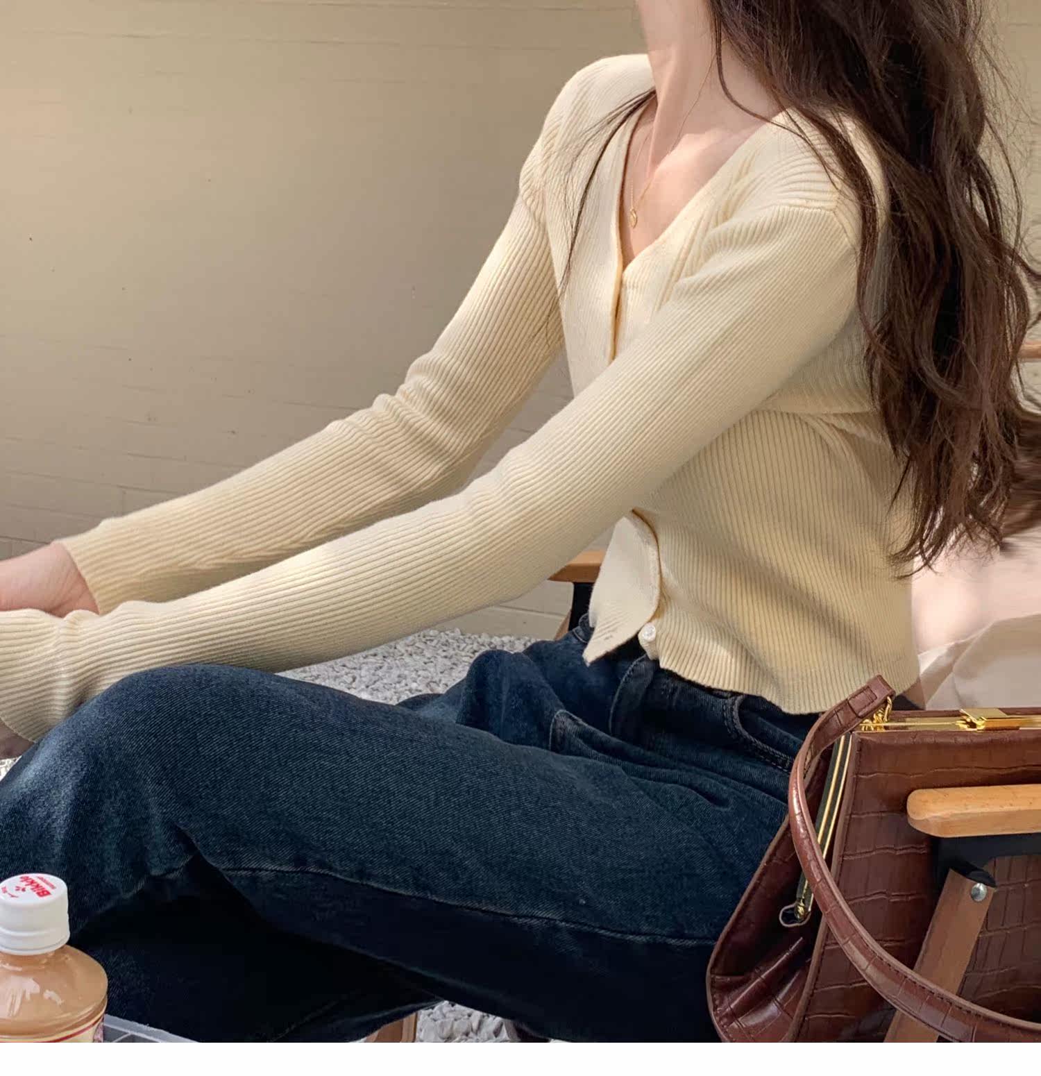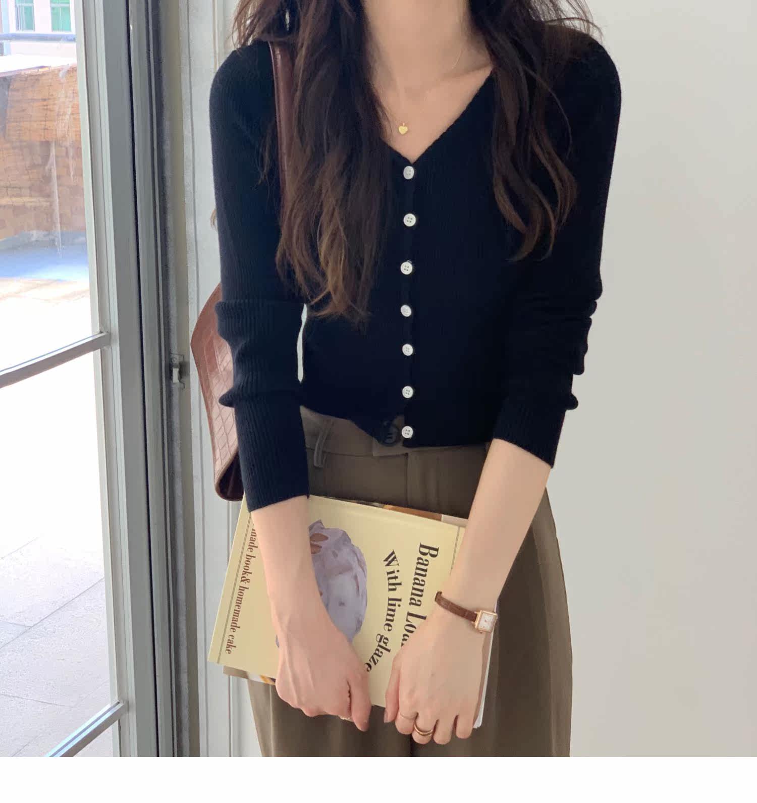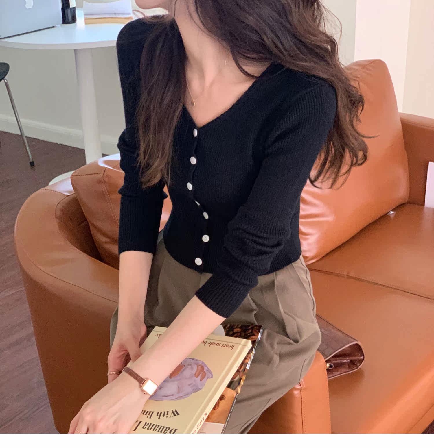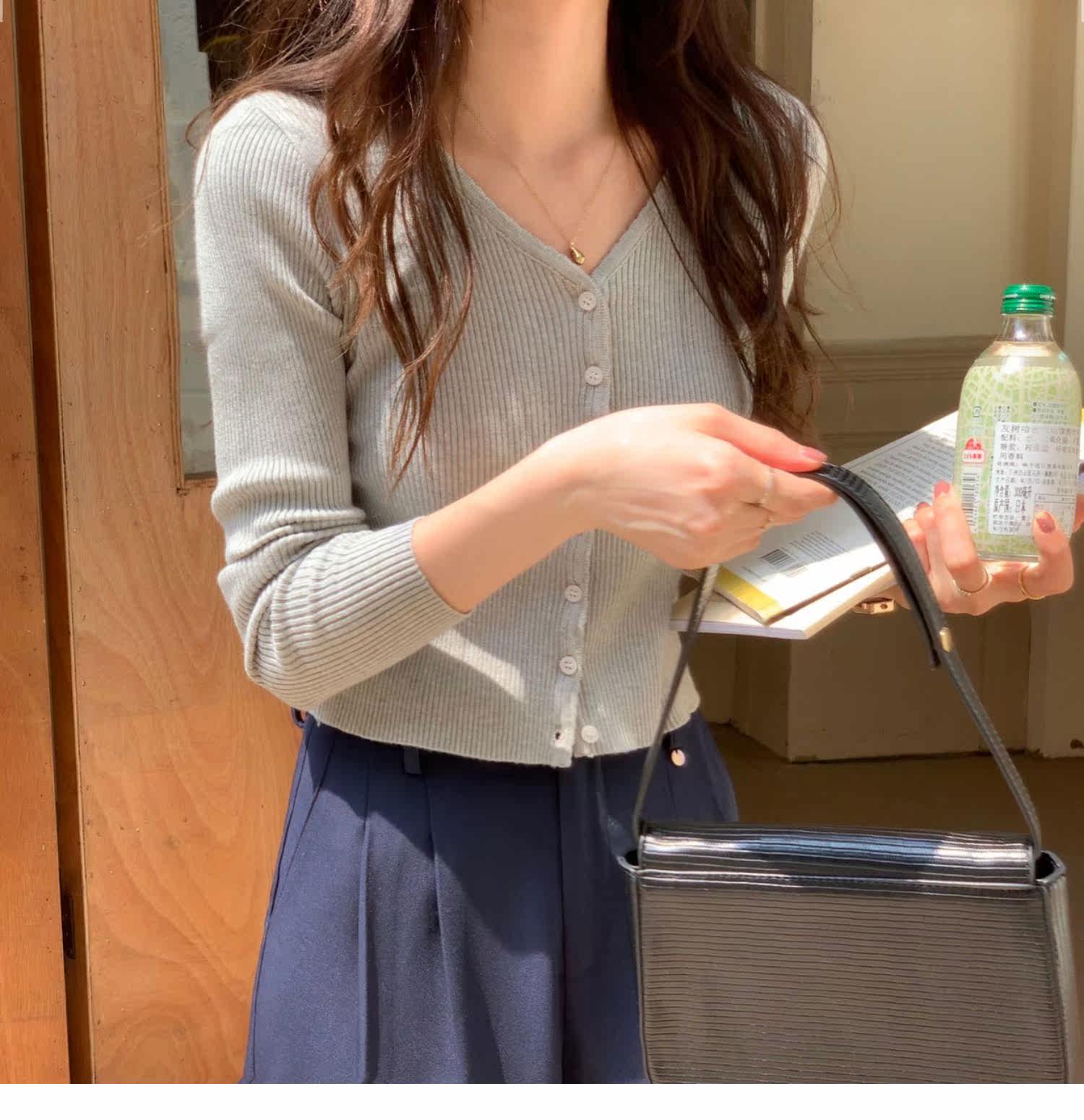 Синий свитер, куртка, кардиган, подходит для подростков, V-образный вырез