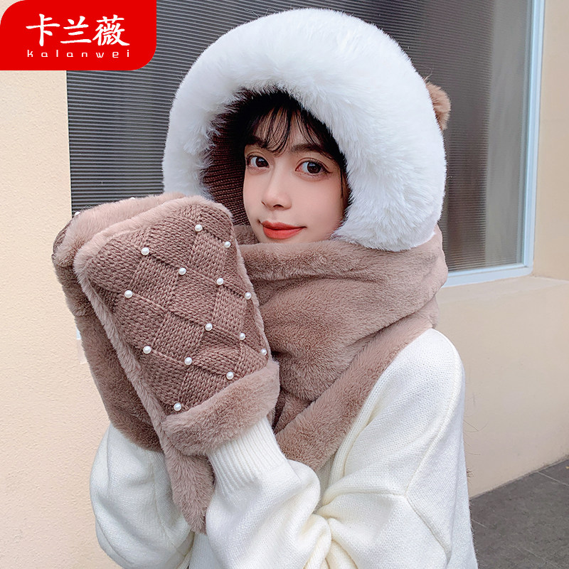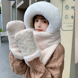 Демисезонная бархатная милая шапка, шарф, перчатки, удерживающий тепло универсальный комплект для школьников и студентов, 3 предмета