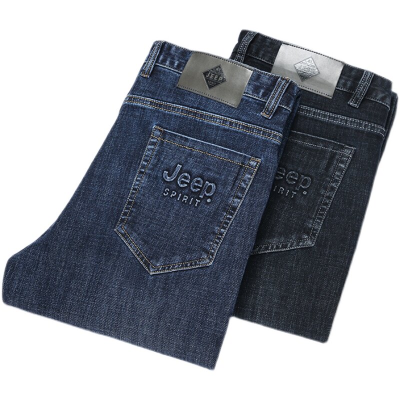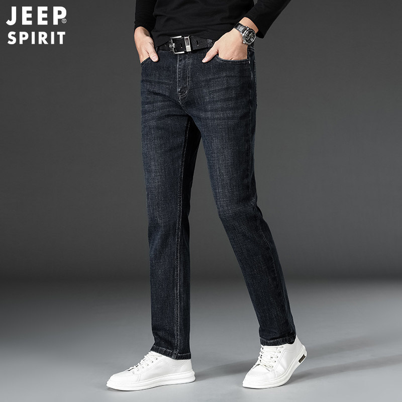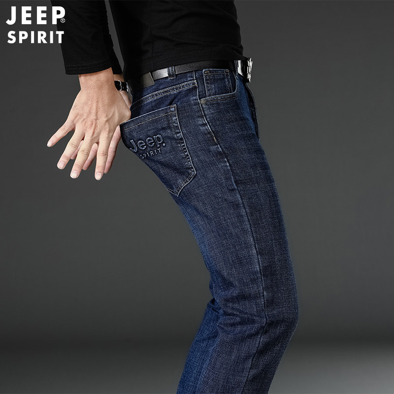 Jeep, джип, осенние джинсы, эластичный ремень, штаны, свободный прямой крой, большой размер