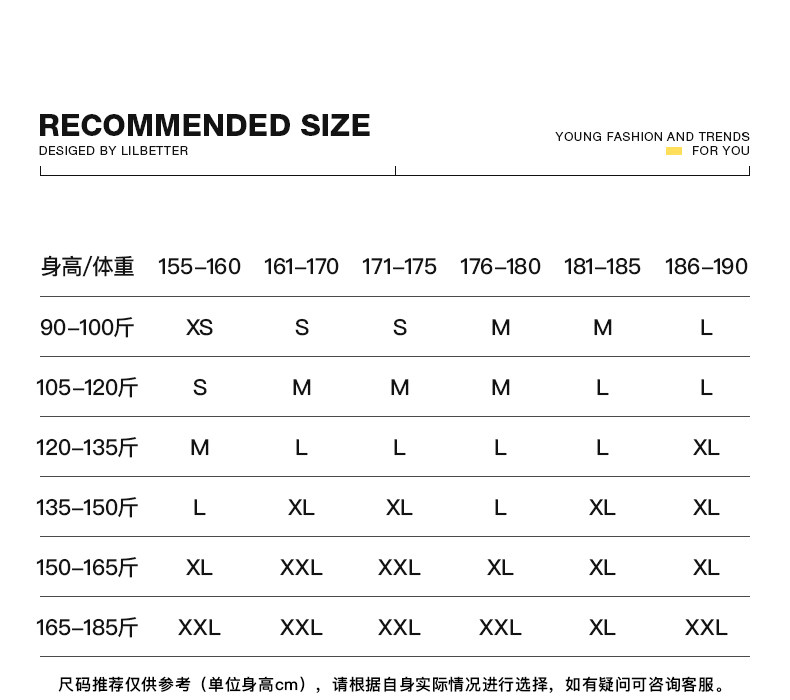 - = 185/XXL 175/L 180/XL