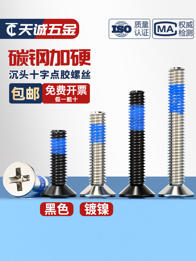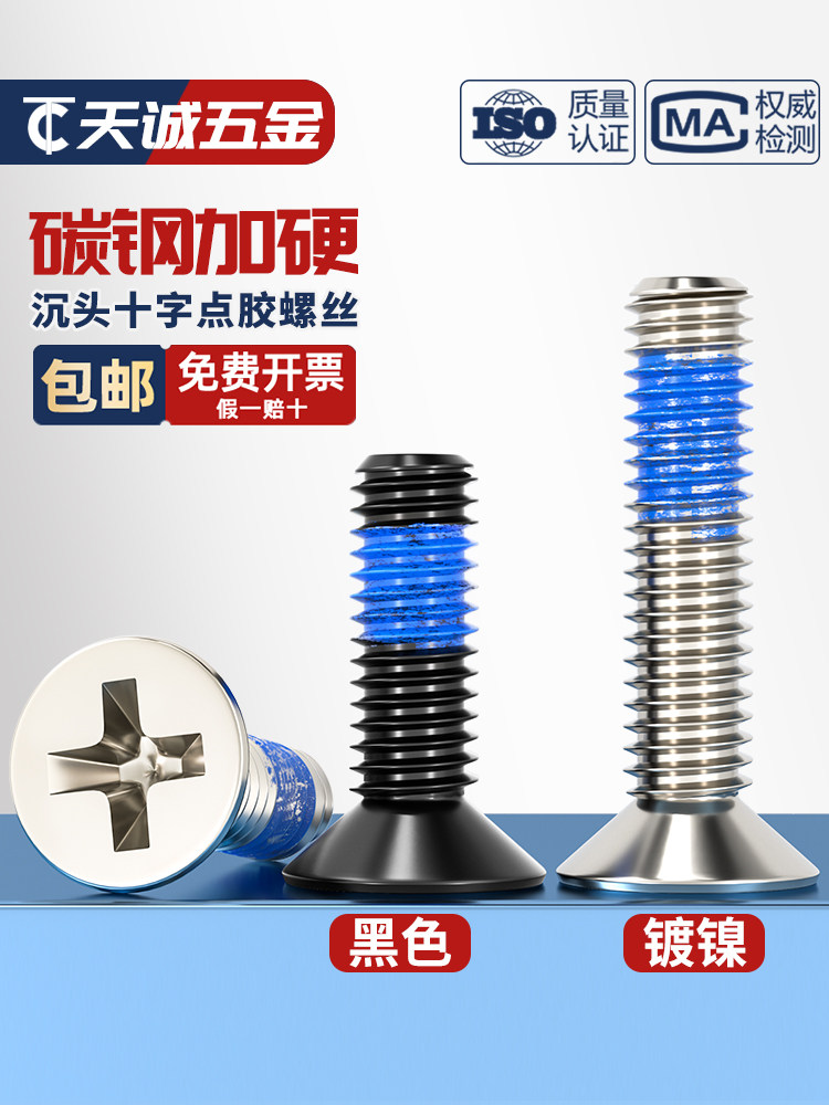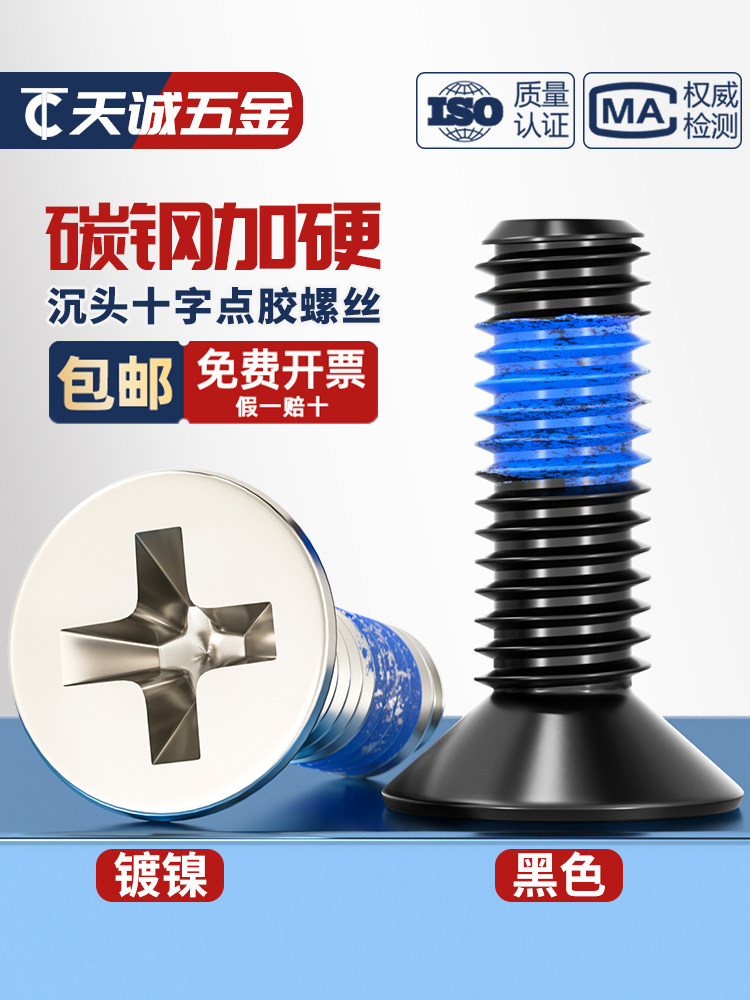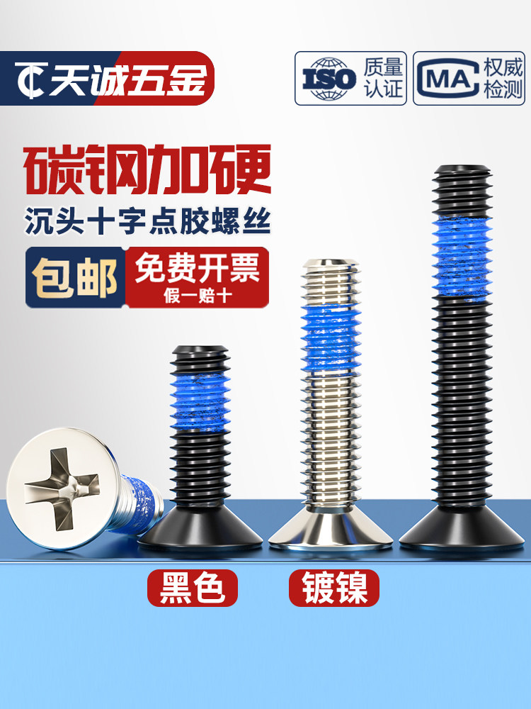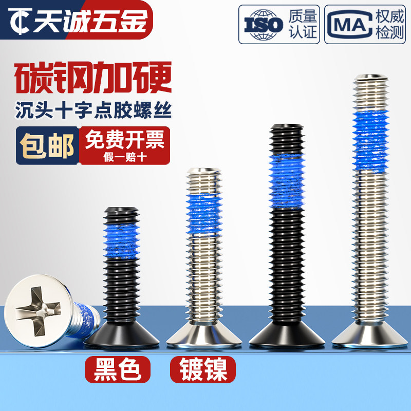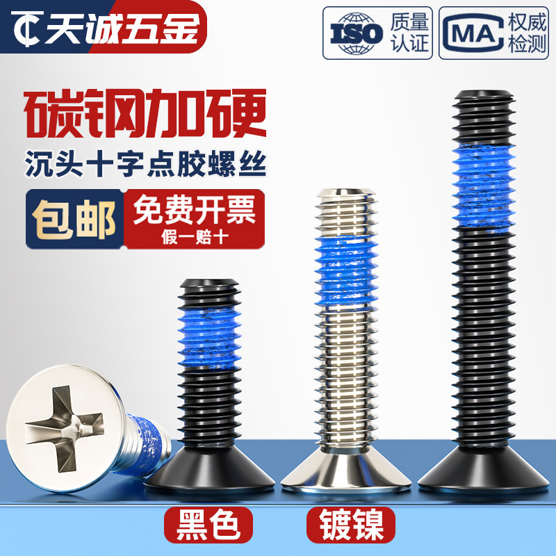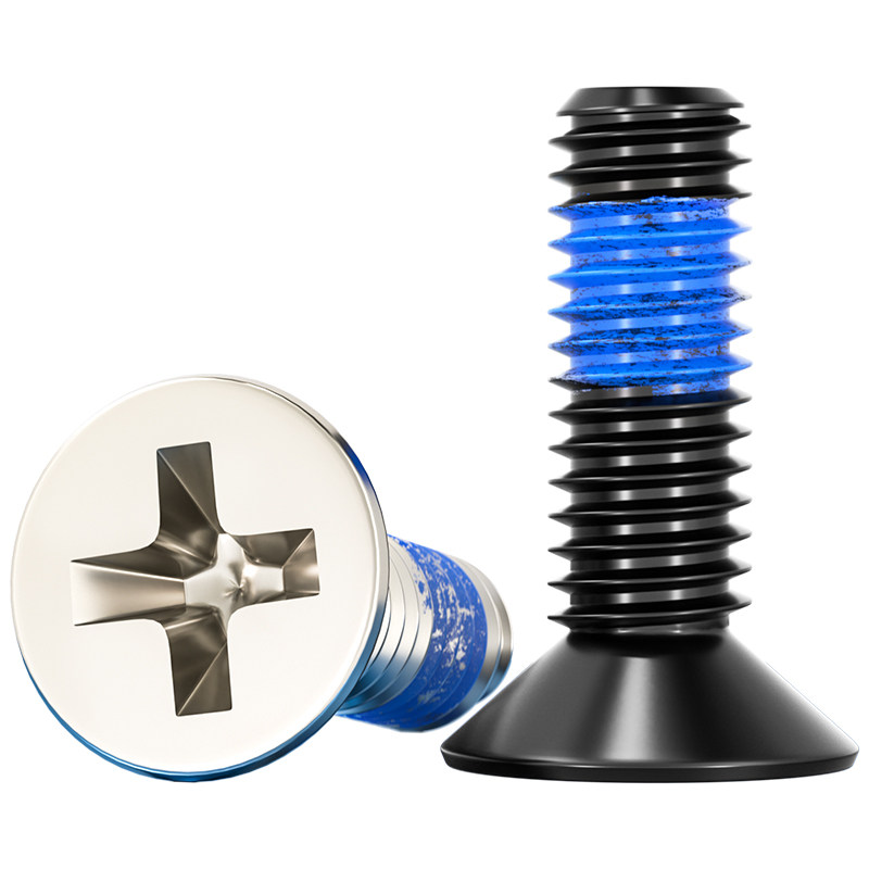 Винты с потайной головкой из черной углеродистой стали, крестообразные противоскользящие, антисейсмические, противоотвинчивающиеся винты с синим клеевым покрытием MM1.2-M6