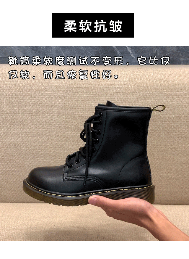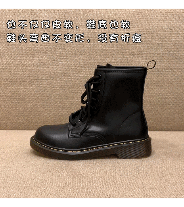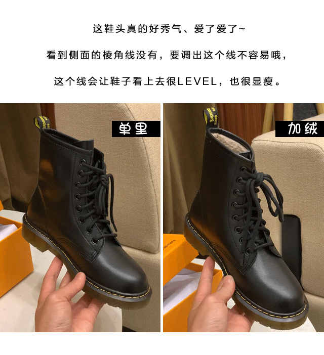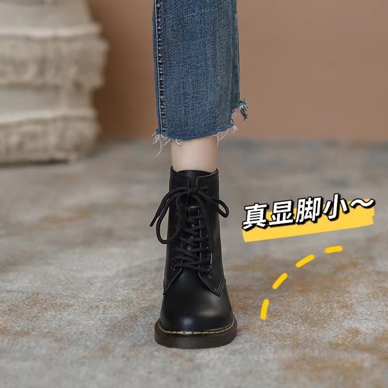 Martens, Tide, зимние флисовые черные короткие сапоги в английском стиле, ботинки, из натуральной кожи, 2024 года, в британском стиле