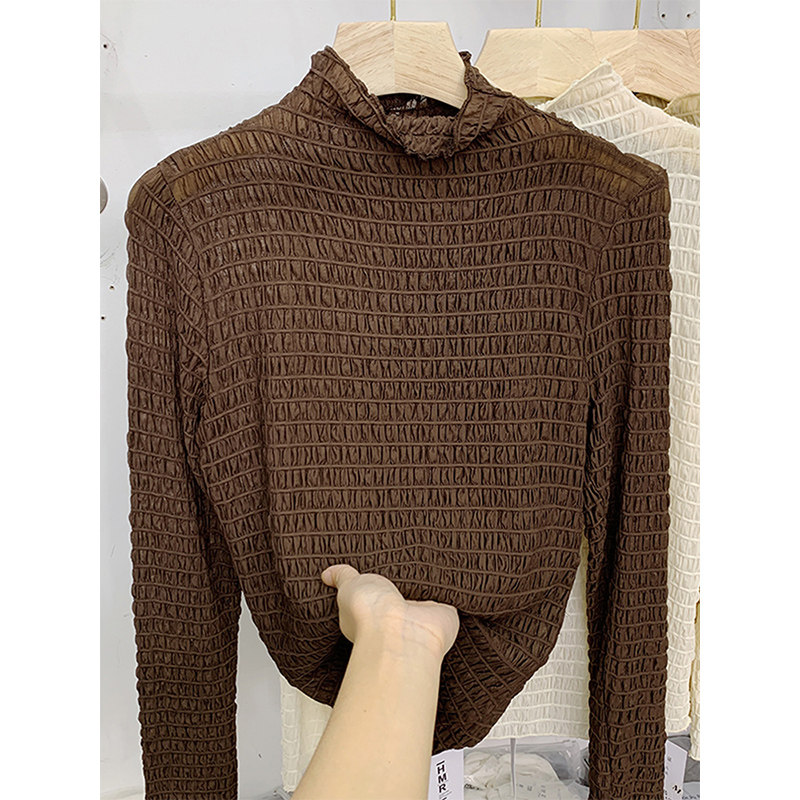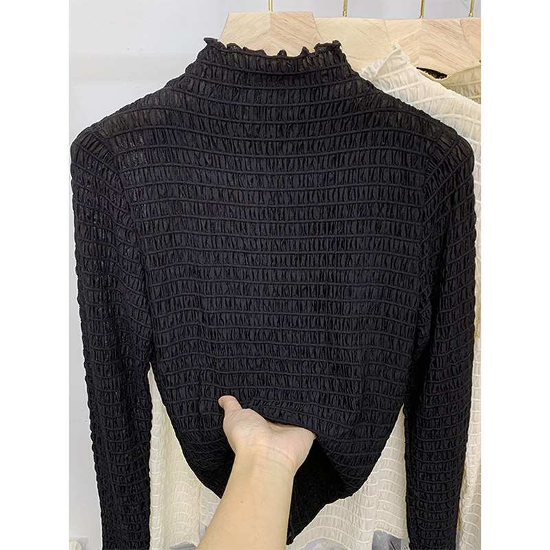 Эластичный шифоновый осенний дизайнерский базовый приятный телу лонгслив, высокий воротник, тренд сезона