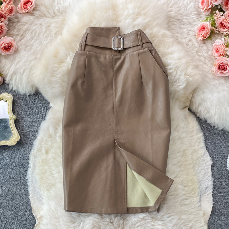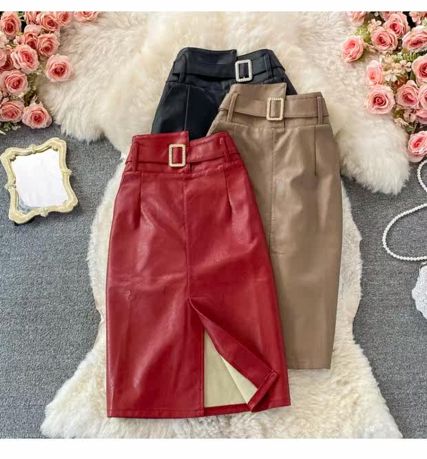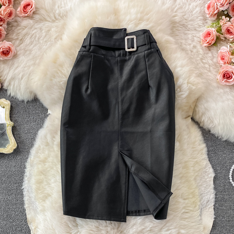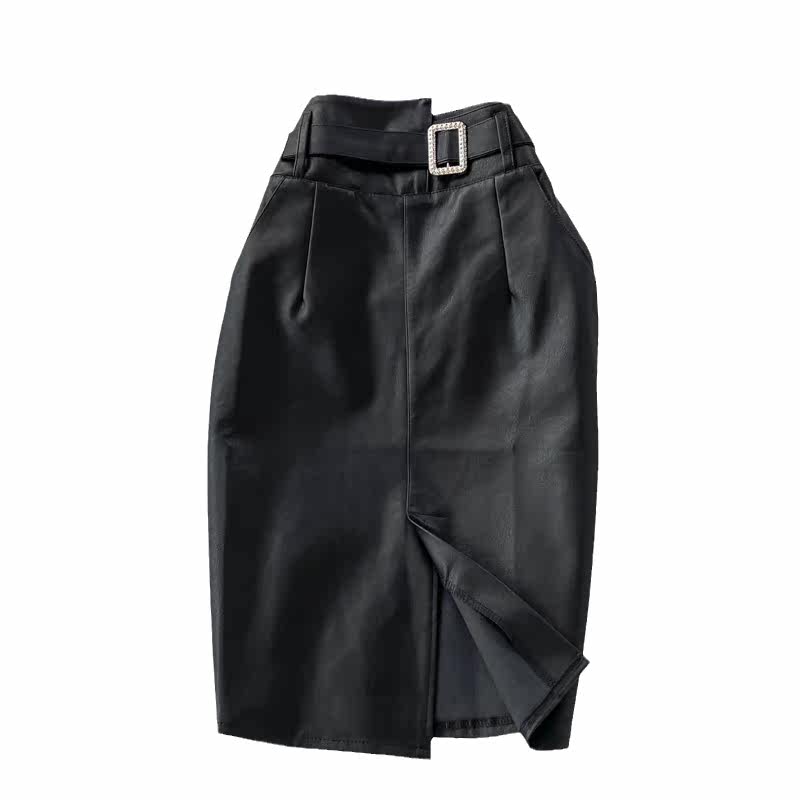 Демисезонная приталенная полиуретановая длинная юбка, коллекция 2021, высокая талия, с акцентом на бедрах, средней длины, А-силуэт