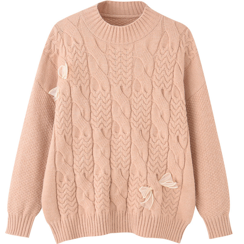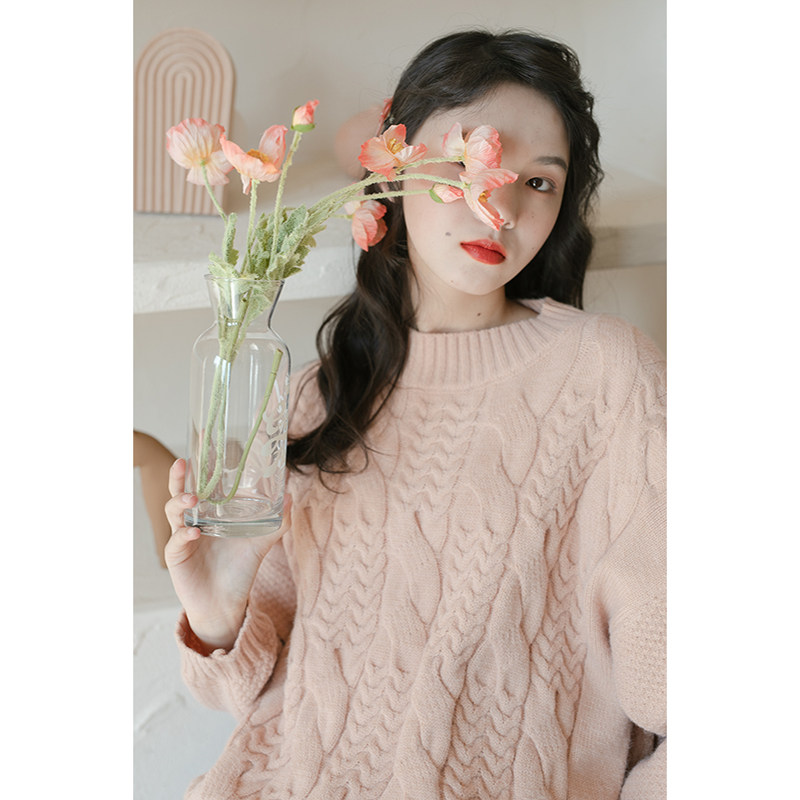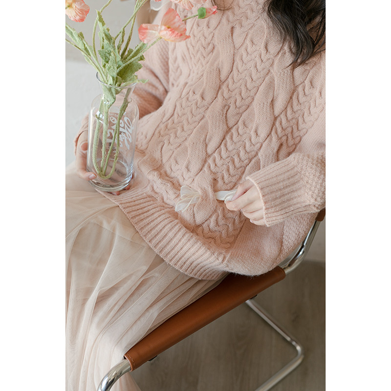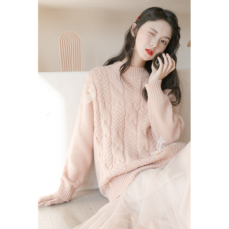 Розовый демисезонный японский трикотажный свитер, в западном стиле