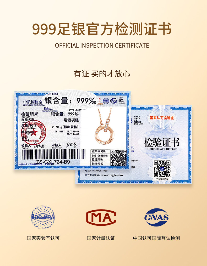 - [999 Серебряный австрийский импорт 锆] Сертификат, связанный с подарочной коробкой из розового золота