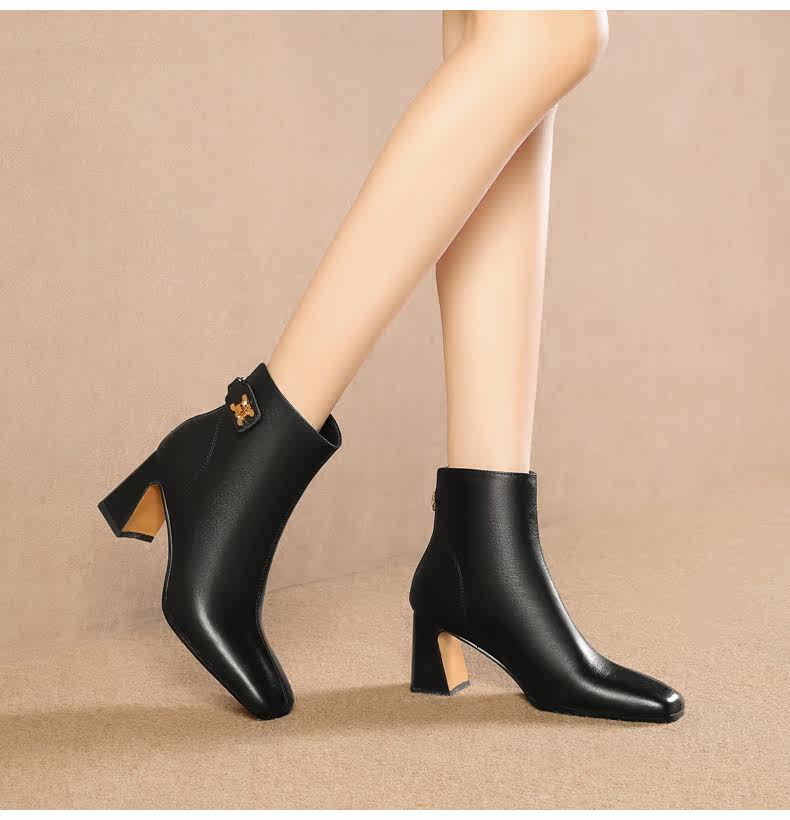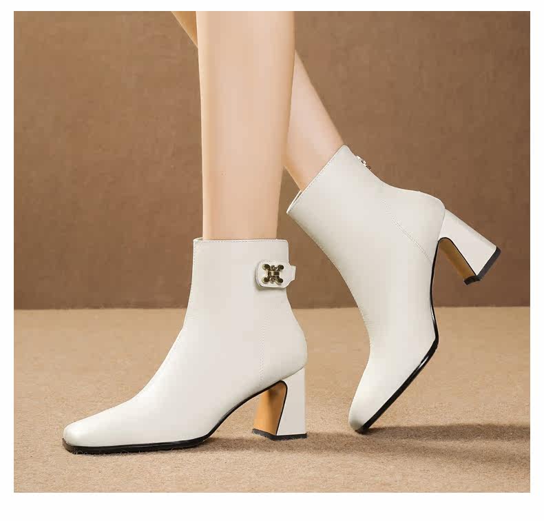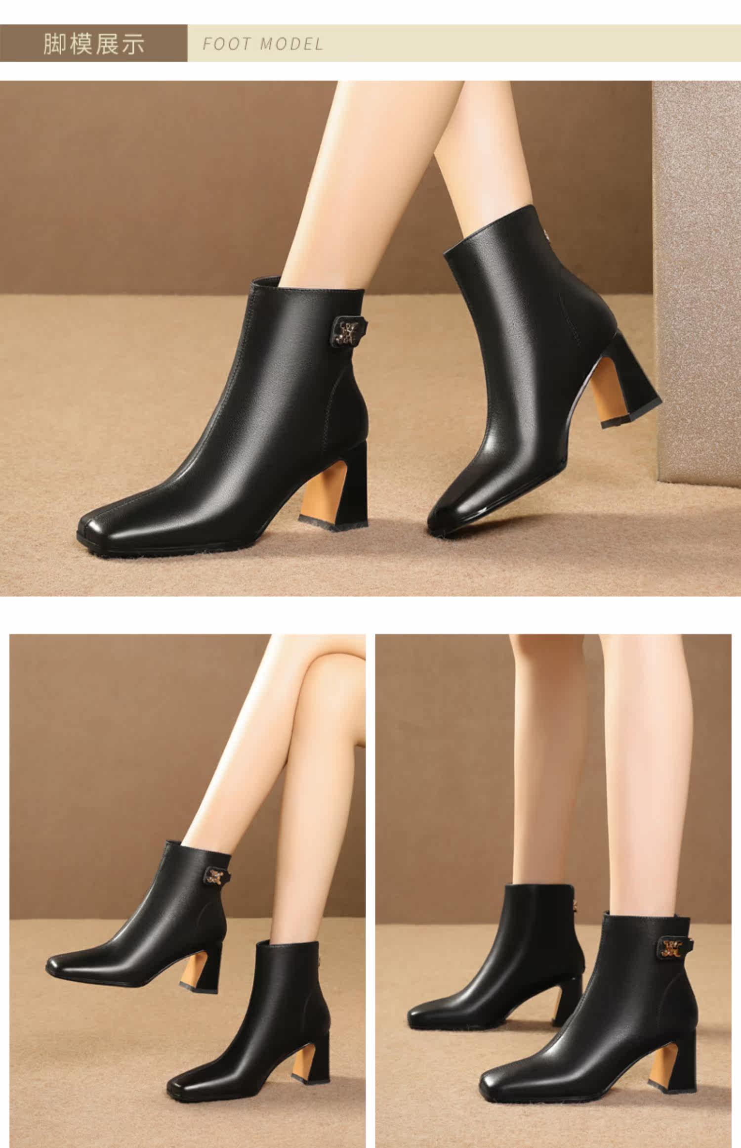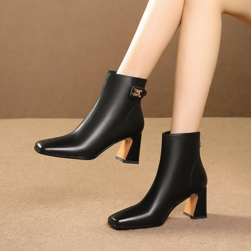 Демисезонные короткие сапоги, ботинки на высоком каблуке, из натуральной кожи, большой размер
