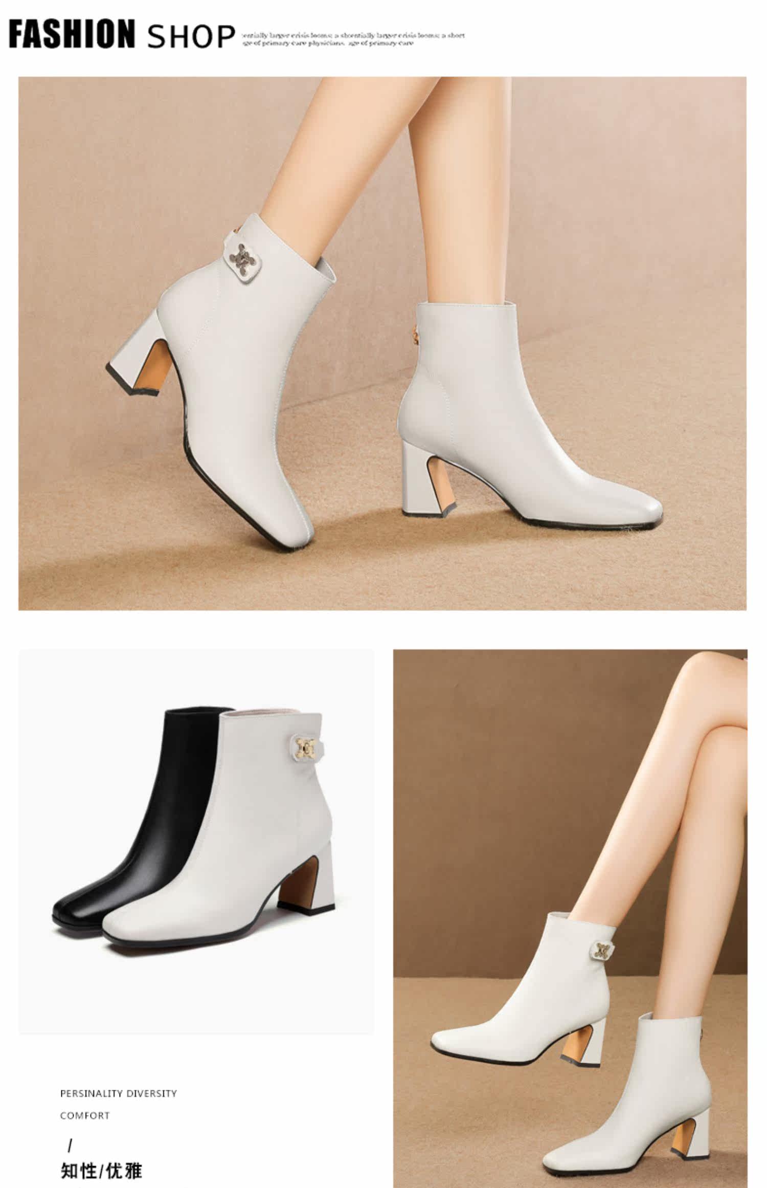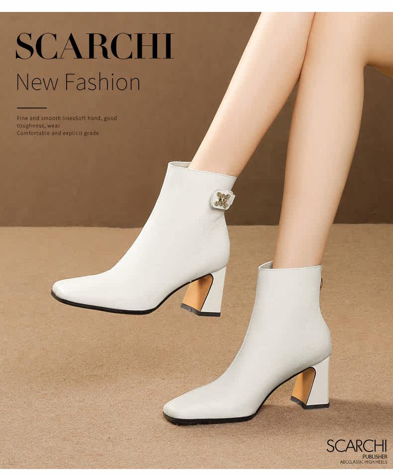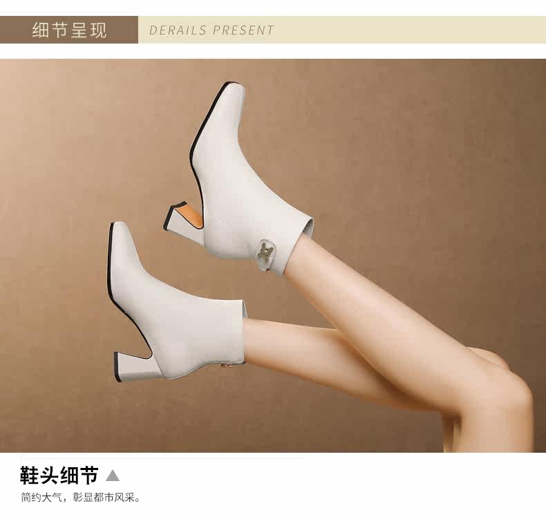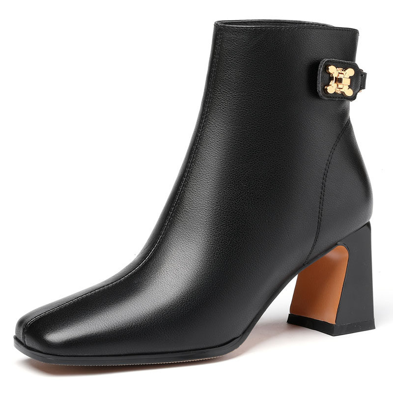 Демисезонные короткие сапоги, ботинки на высоком каблуке, из натуральной кожи, большой размер