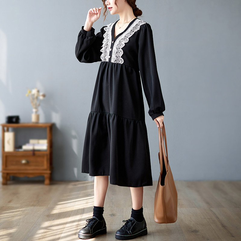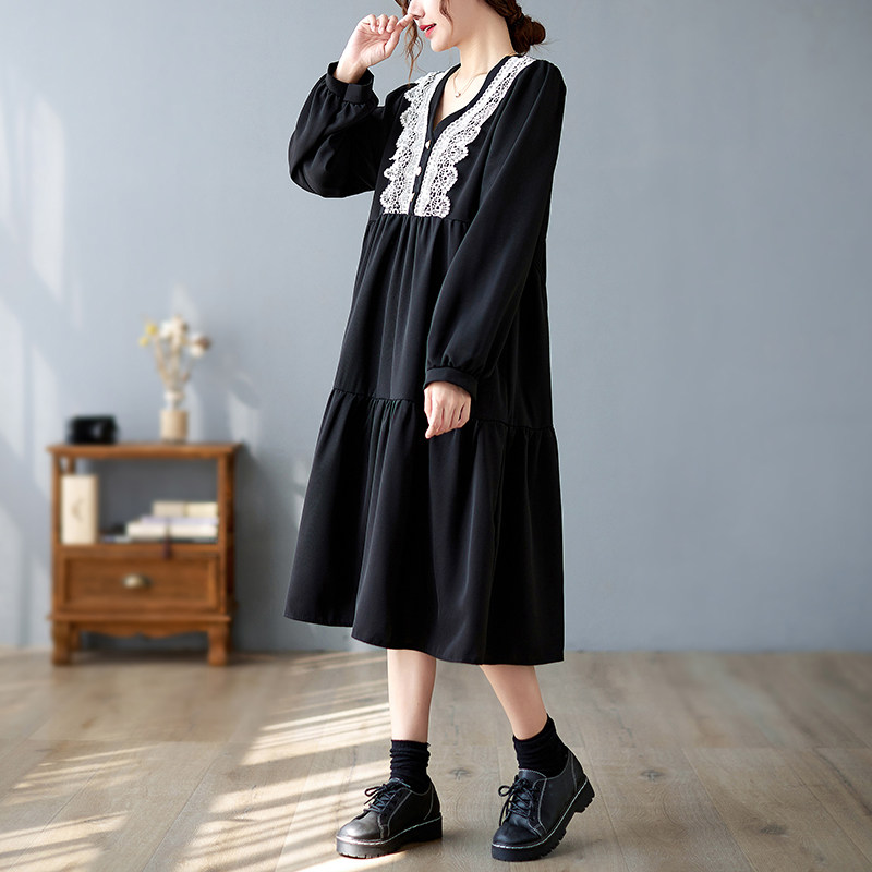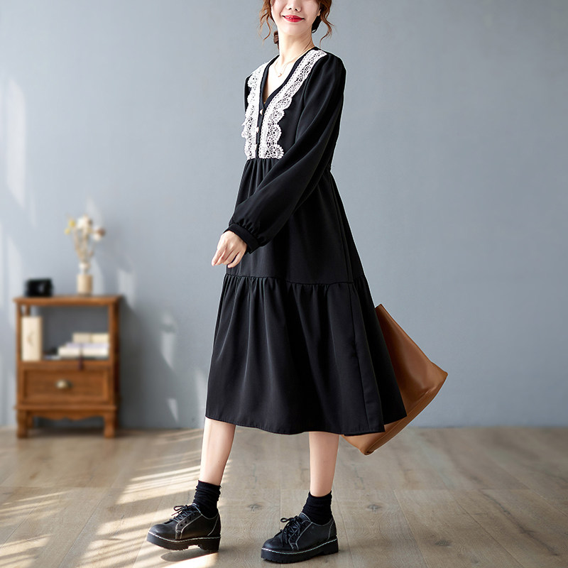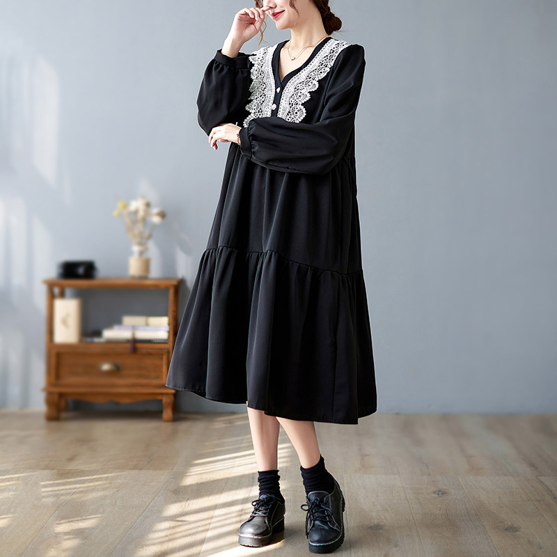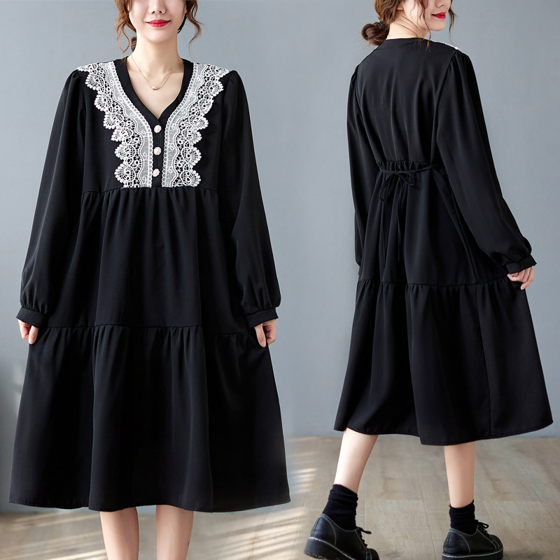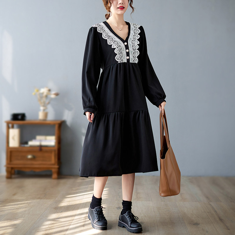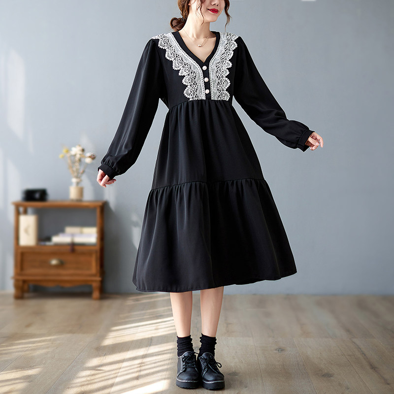 Кружевное платье, большой размер, подходит для полных девушек, в западном стиле, V-образный вырез, по фигуре
