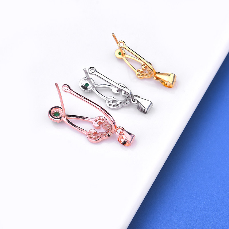 S925, зеленая инкрустация камня, застежка с цирконом, защитный амулет, плетеная пряжка ручной работы, аксессуары, серебро 925 пробы, DIY