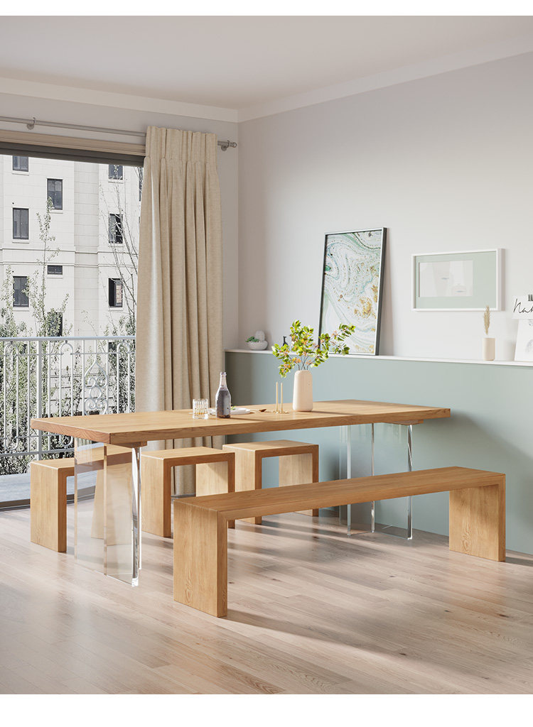 Скандинавский простой легкий роскошный акриловый подвесной обеденный стол, дизайнерский креативный прямоугольный бревенчатый рабочий стол, большой стол
