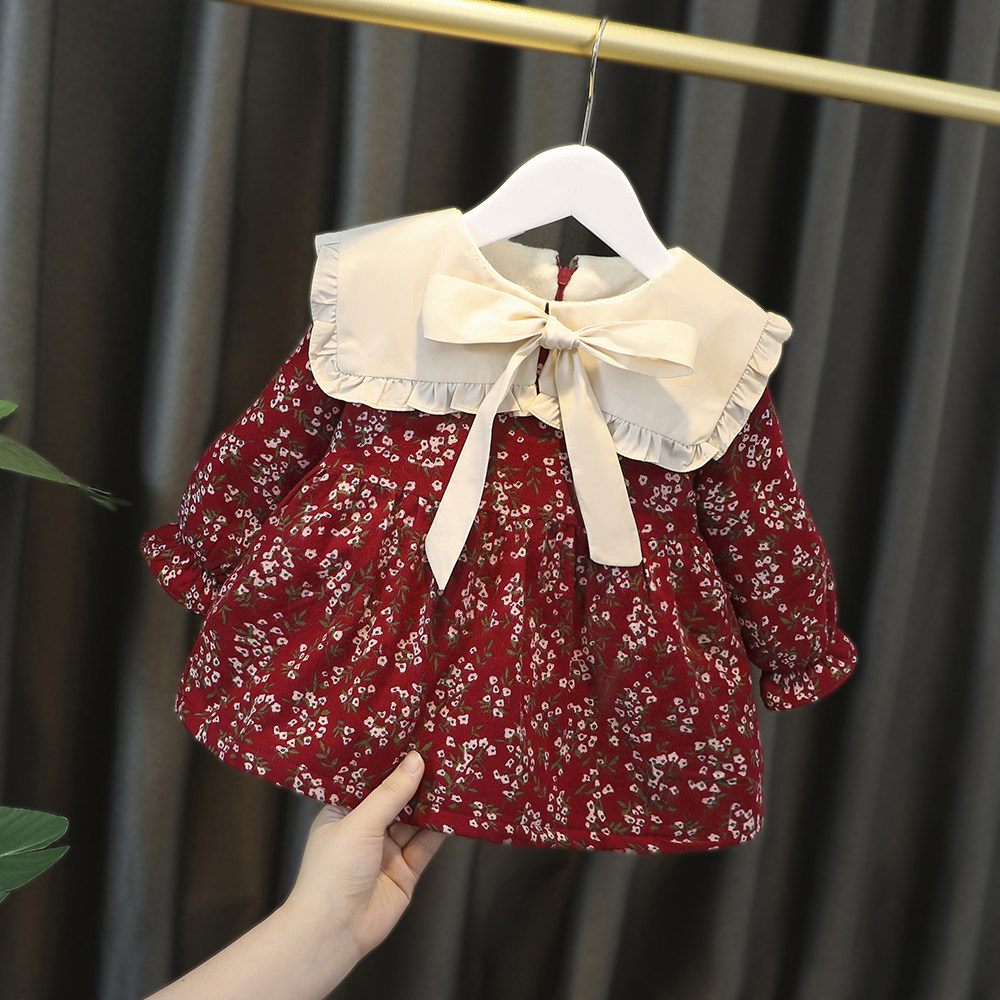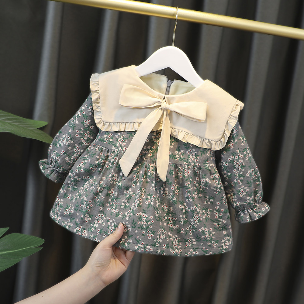 Утепленное модное осеннее платье для девочек, удерживающий тепло наряд маленькой принцессы, 2-4 лет