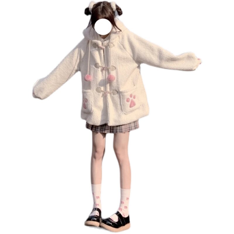 Бархатная японская милая оригинальная толстовка с капюшоном, куртка, свободный крой, увеличенная толщина
