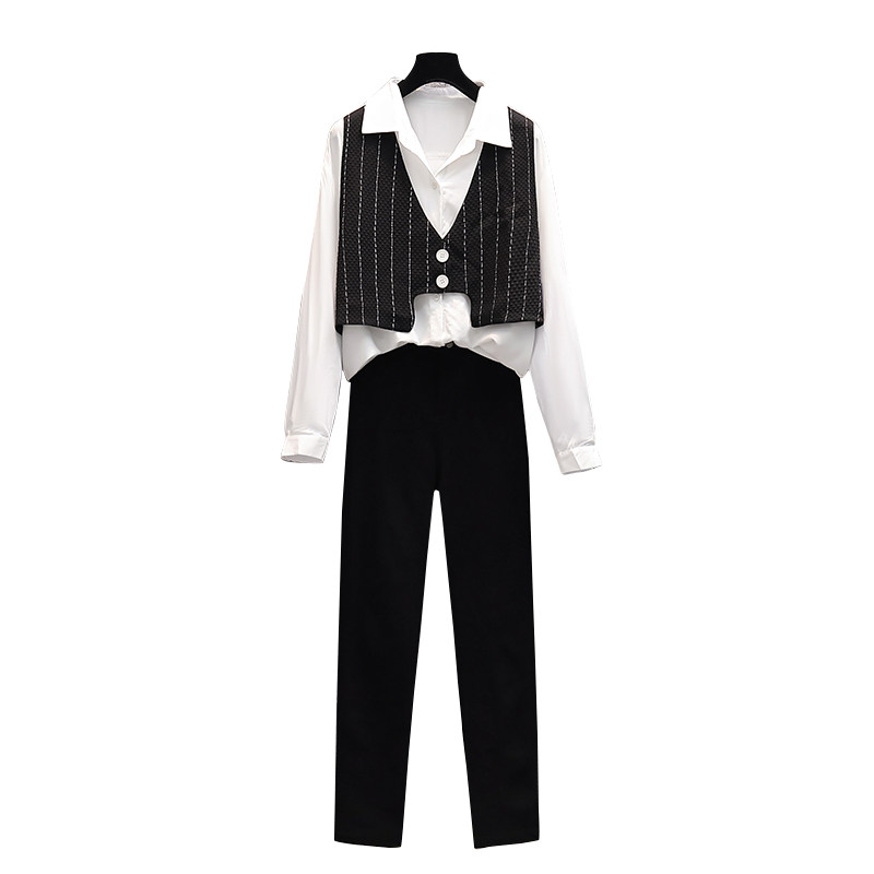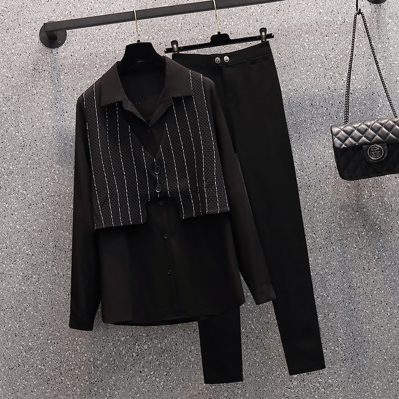 Осенний жилет, рубашка, комплект, штаны, большой размер, коллекция 2021, подходит для полных девушек, в западном стиле