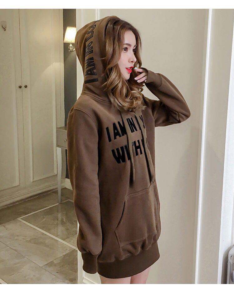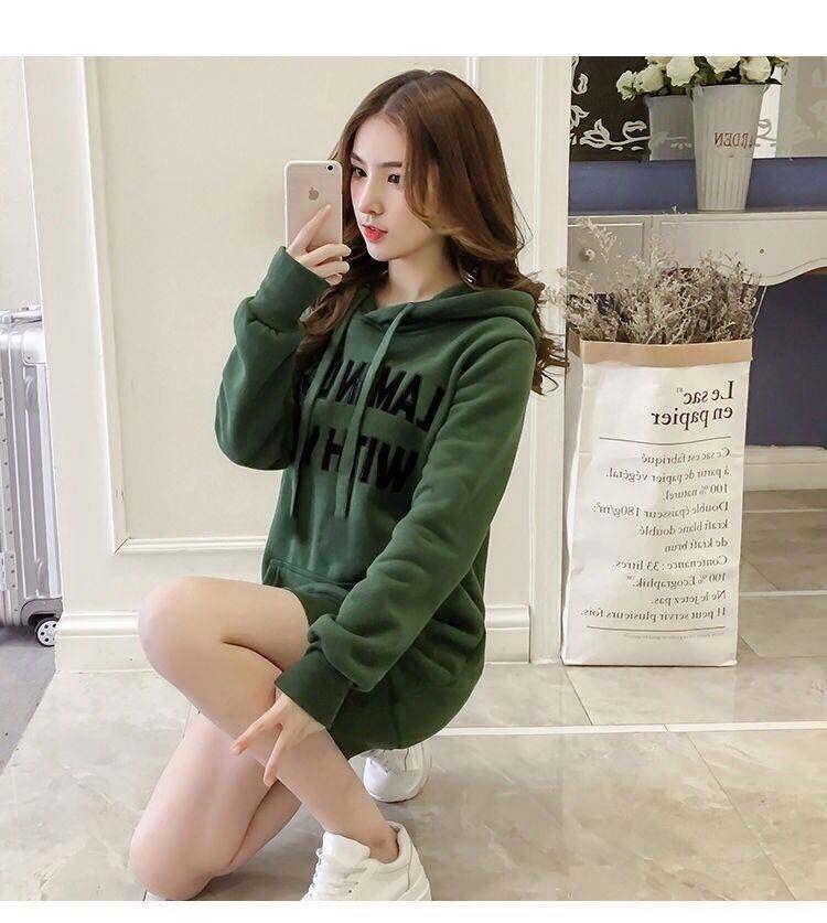 Толстовка с капюшоном, демисезонный пуховик, длинные утепленные джинсы с начесом, куртка для школьников, в корейском стиле, средней длины