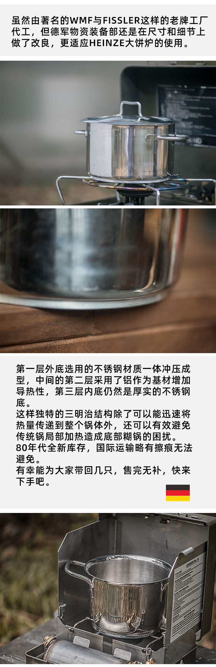 Немецкая военная версия супа из нержавеющей стали горшок с горшком Германии импортированный пан