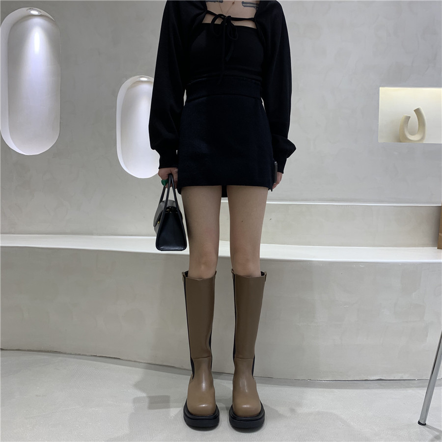 Коричневые высокие сапоги на платформе, белые демисезонные челси, ботинки, подходит для подростков, коллекция 2022