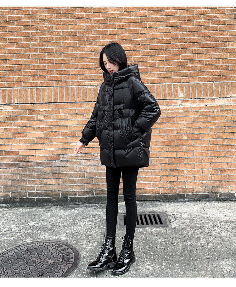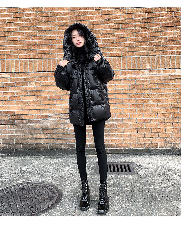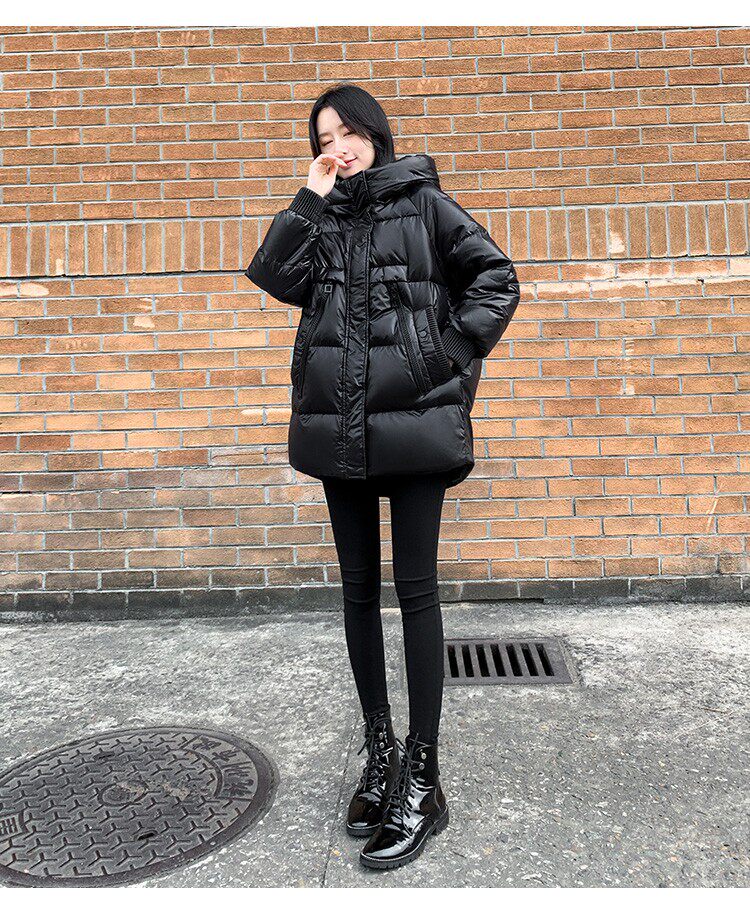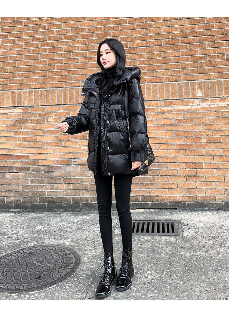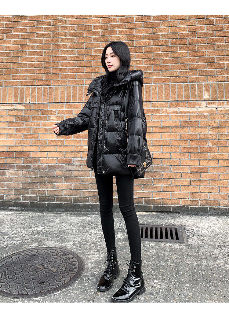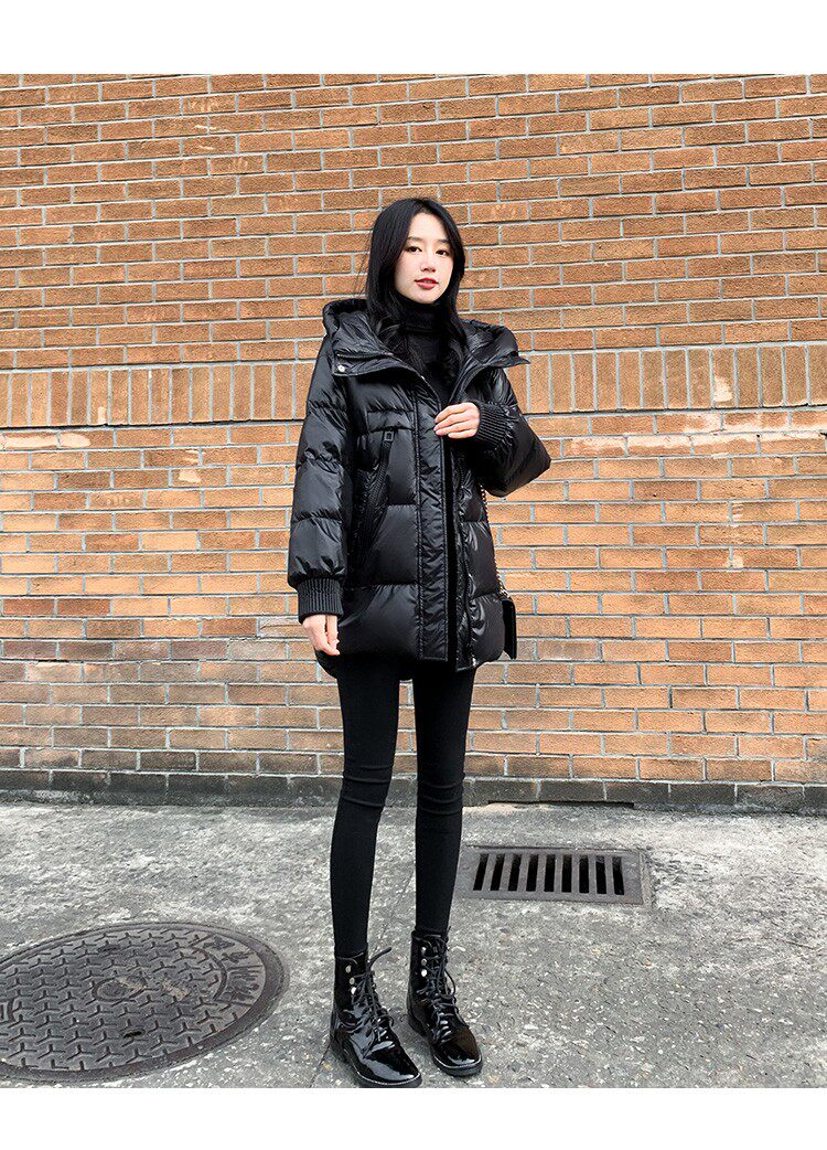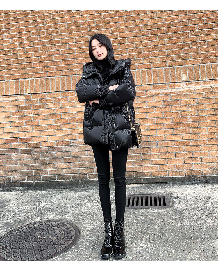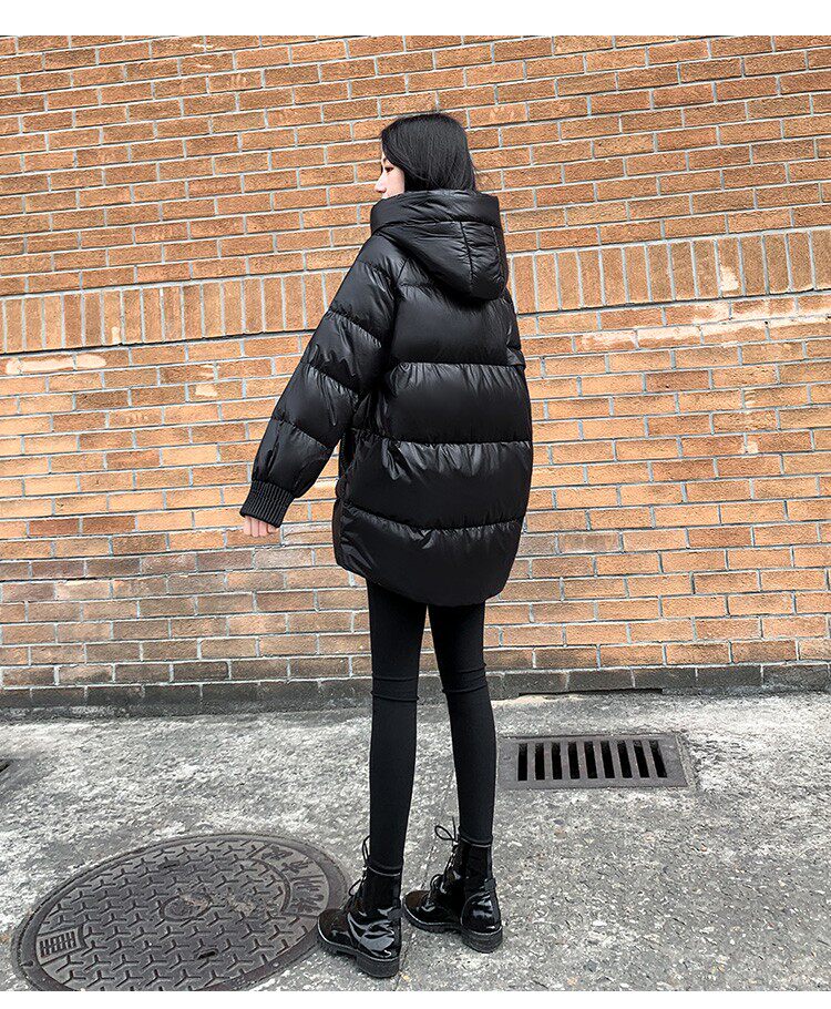 Пуховик, зимняя черная толстовка с капюшоном, бархатная куртка, 2023, в корейском стиле, свободный крой, утиный пух