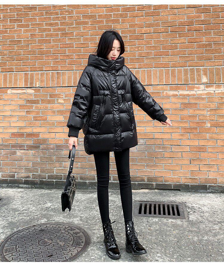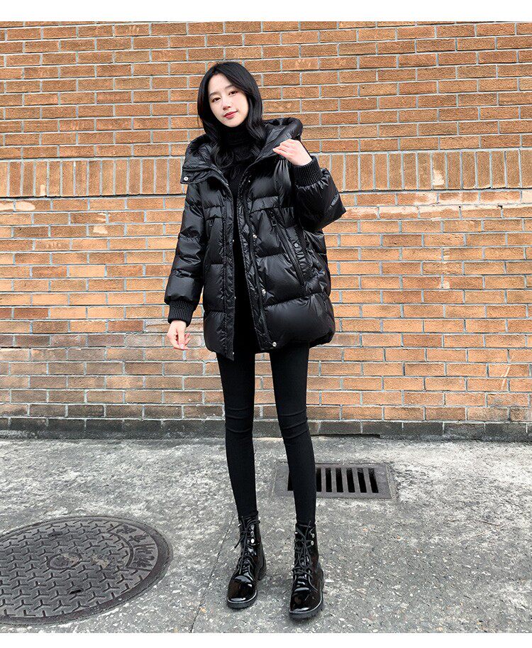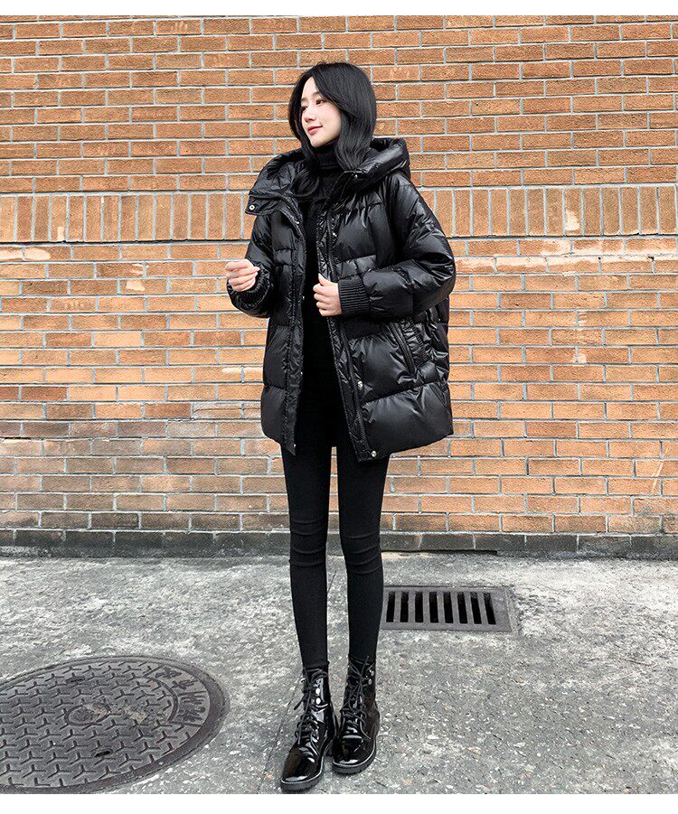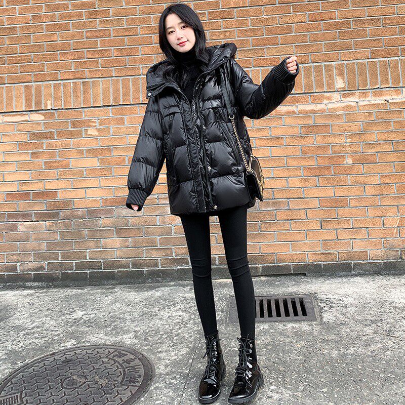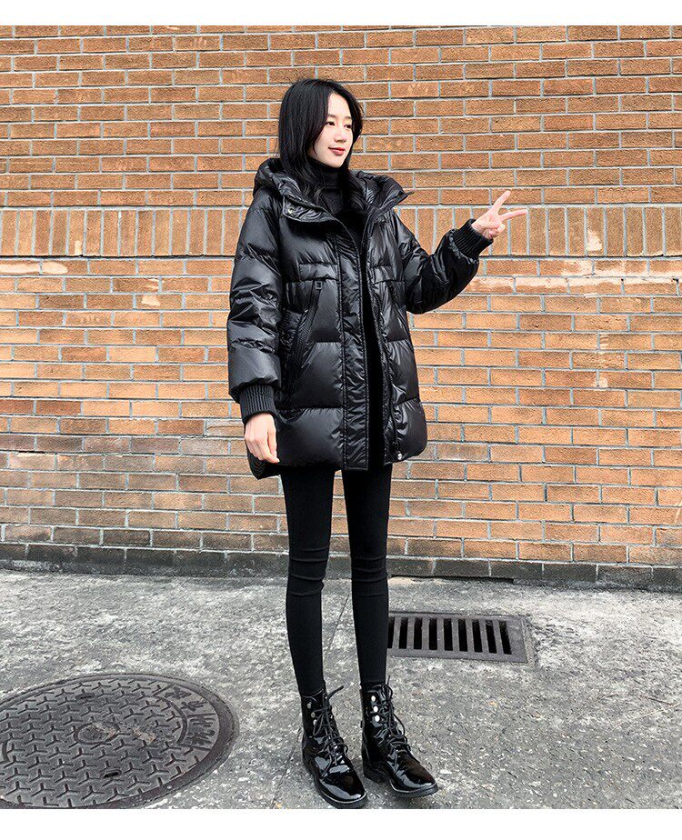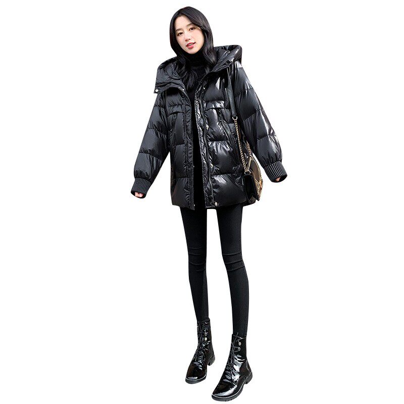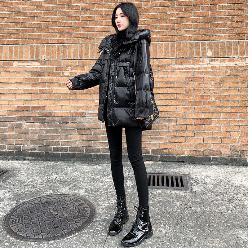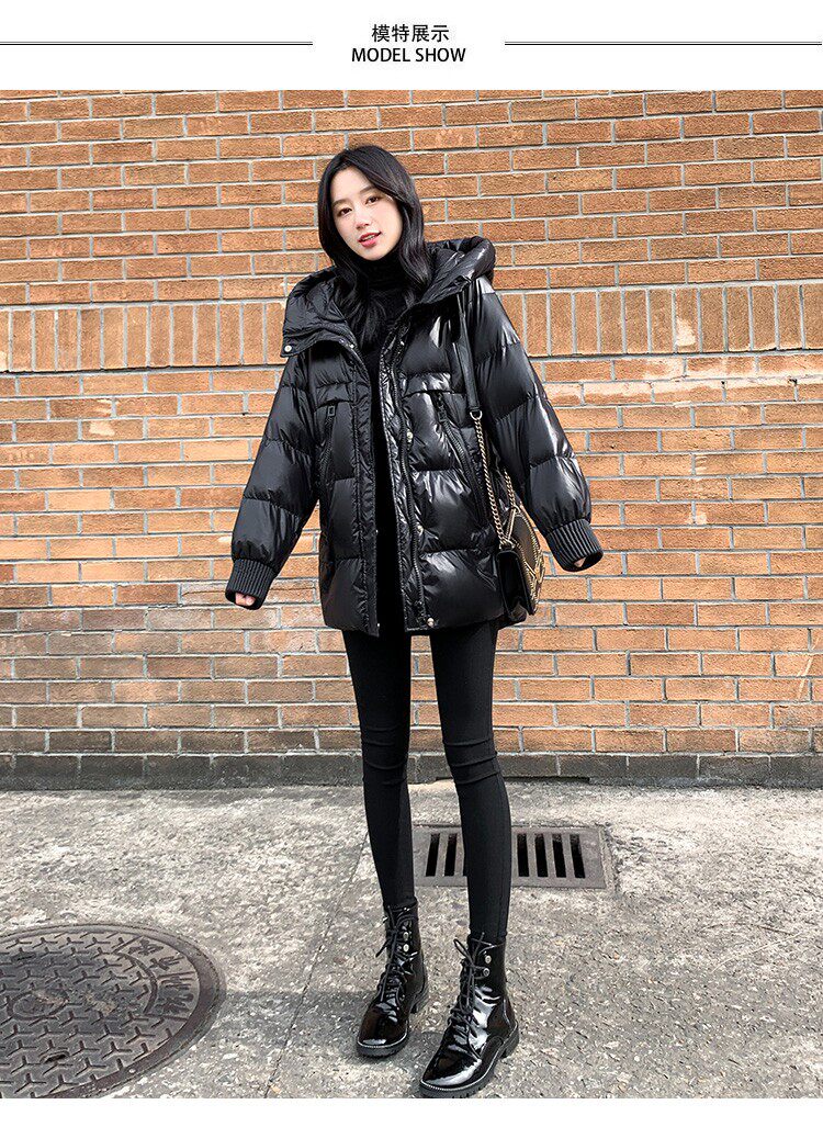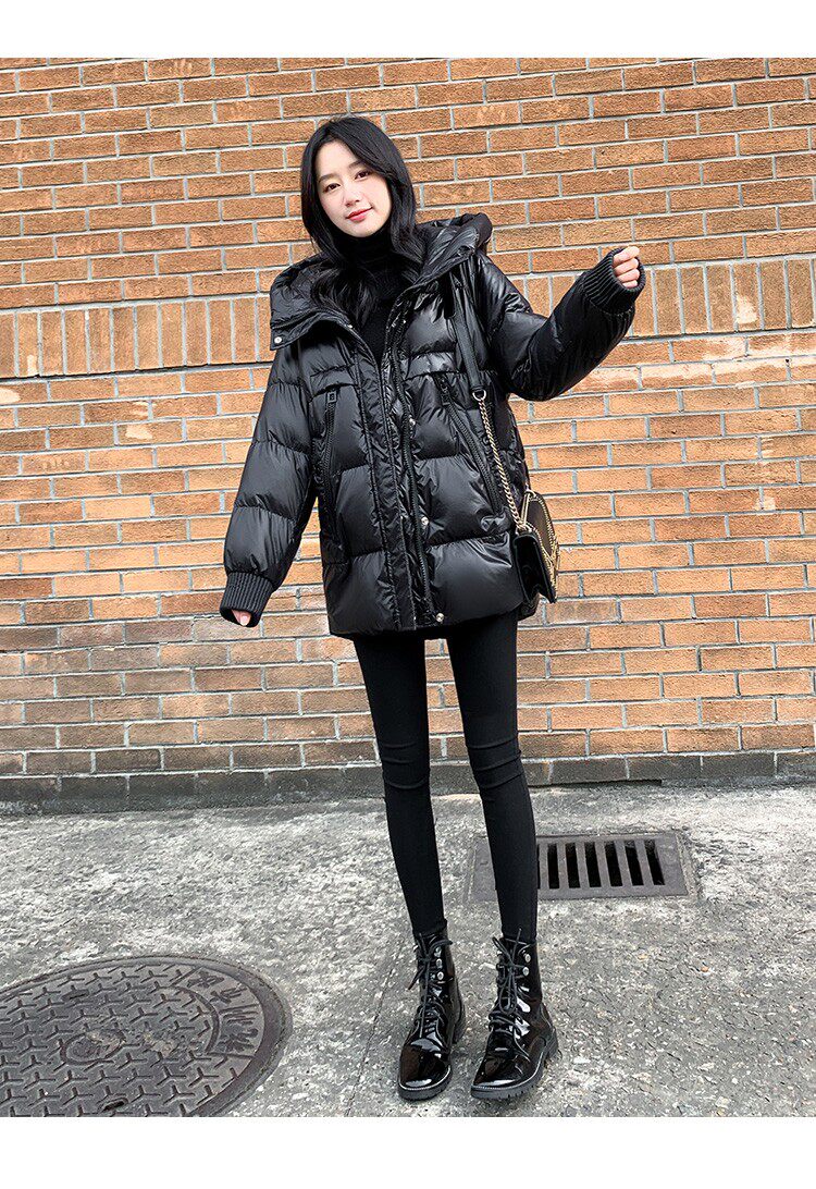 Пуховик, зимняя черная толстовка с капюшоном, бархатная куртка, 2023, в корейском стиле, свободный крой, утиный пух