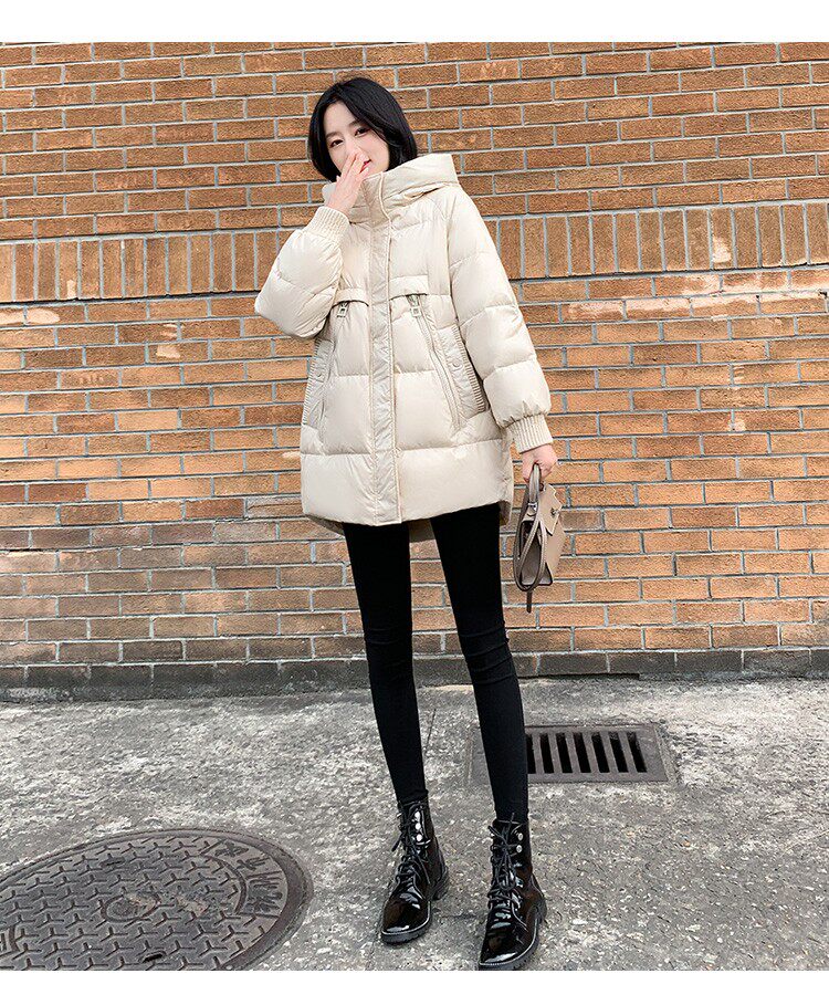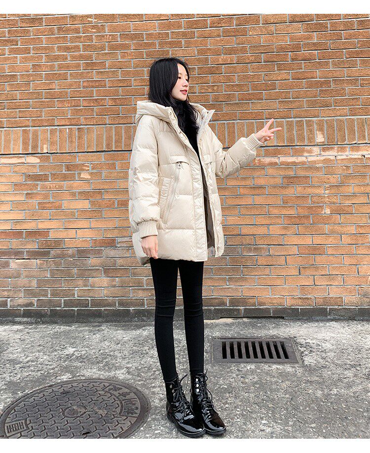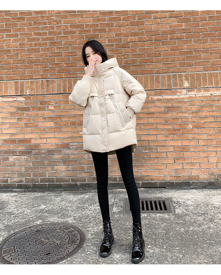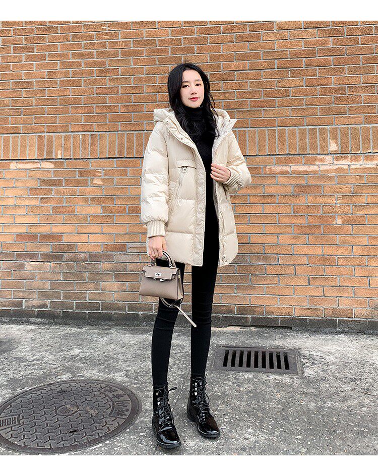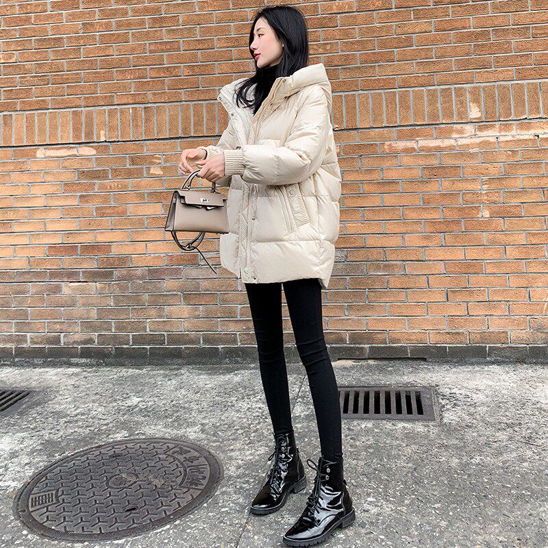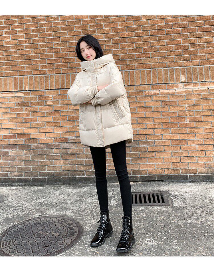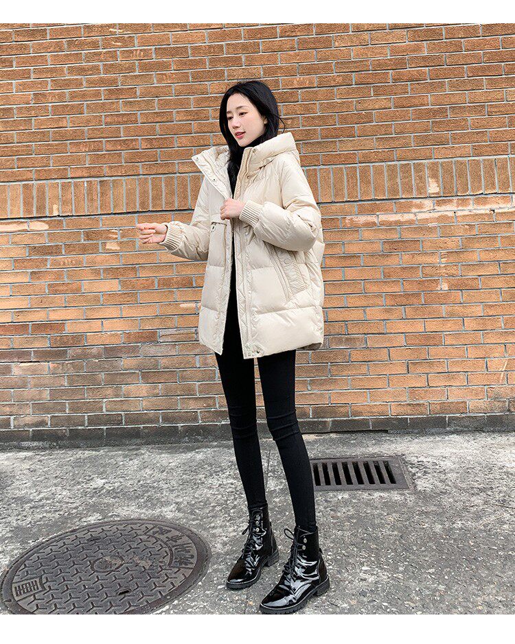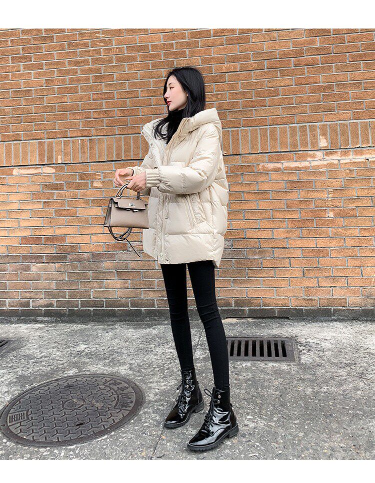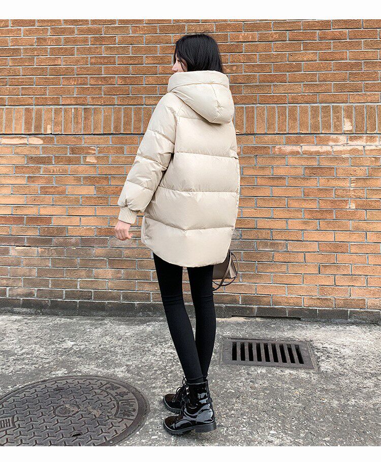 Пуховик, зимняя черная толстовка с капюшоном, бархатная куртка, 2023, в корейском стиле, свободный крой, утиный пух