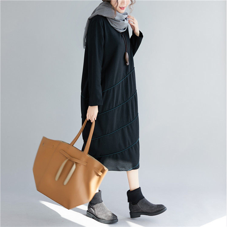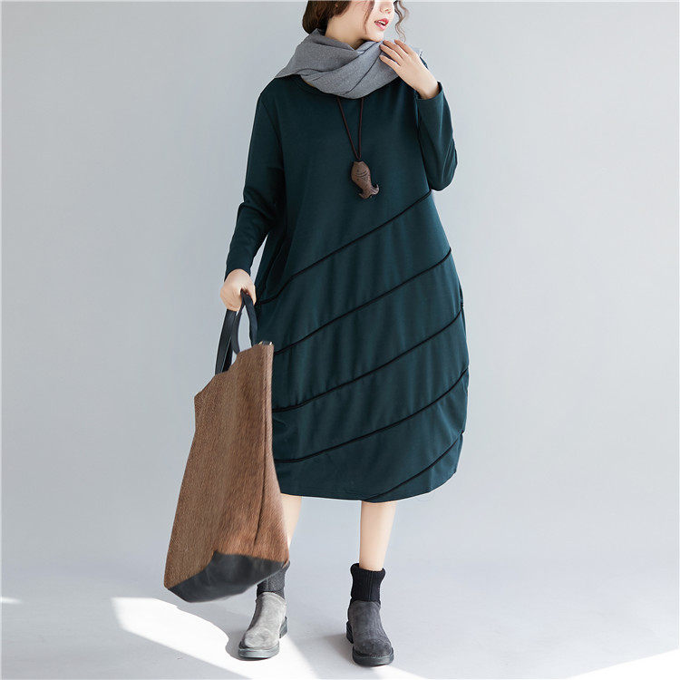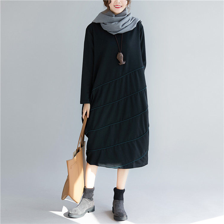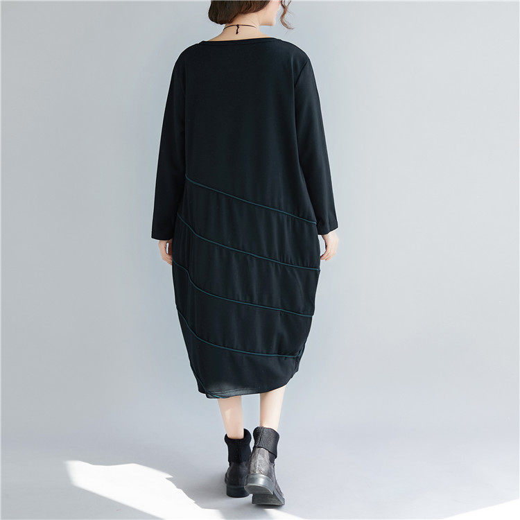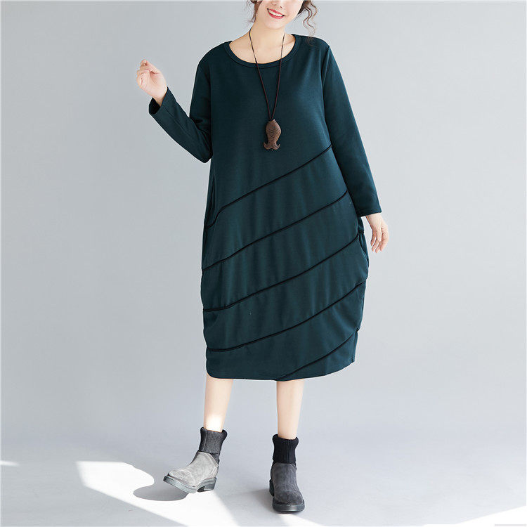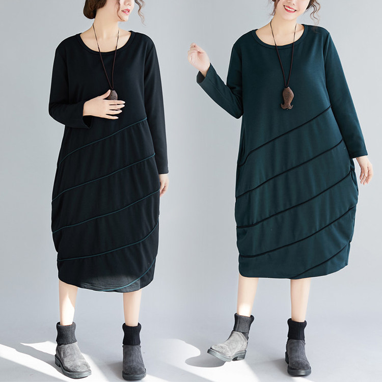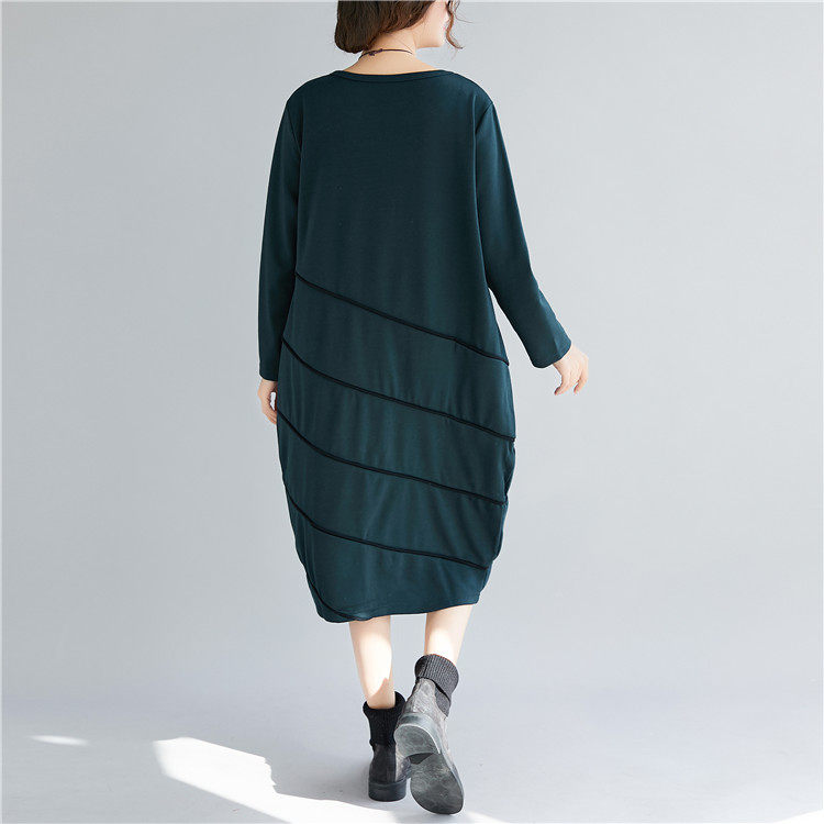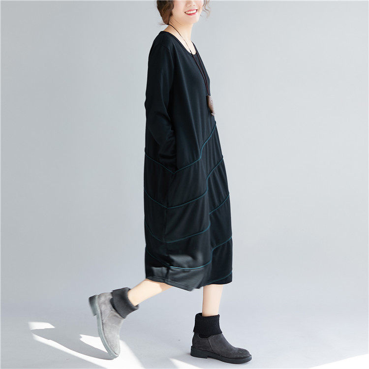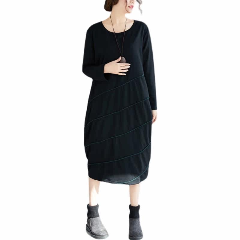 Демисезонный длинный лонгслив с круглым воротником, базовое платье для отдыха, большой размер, свободный крой, средней длины