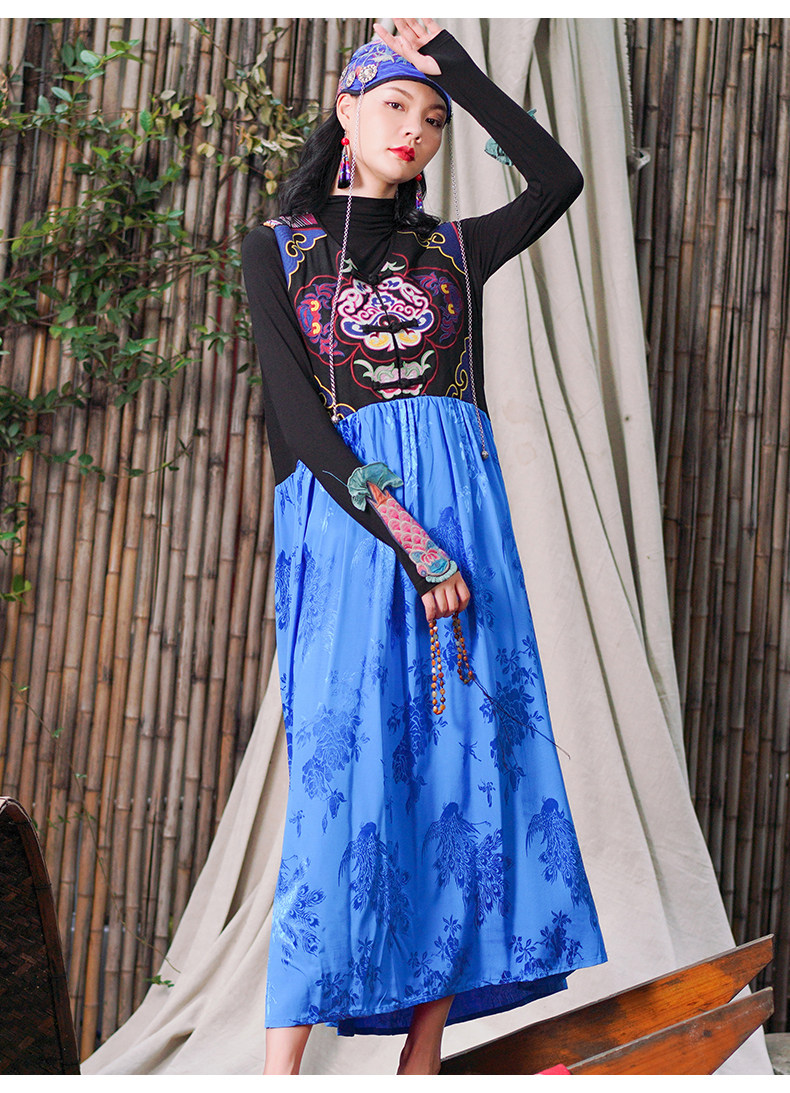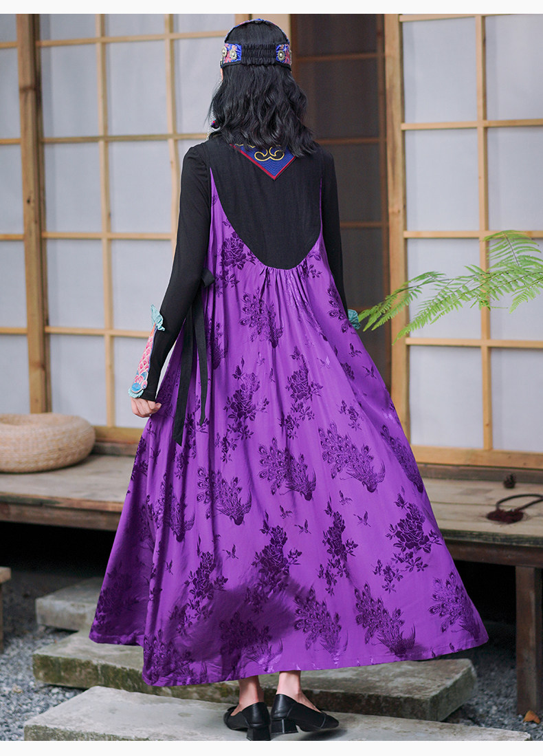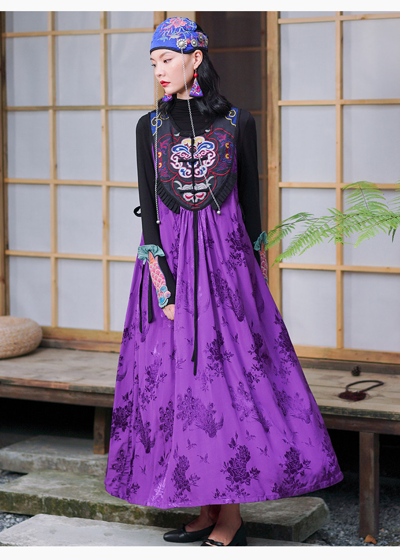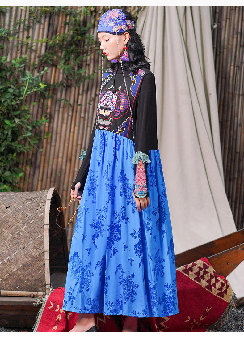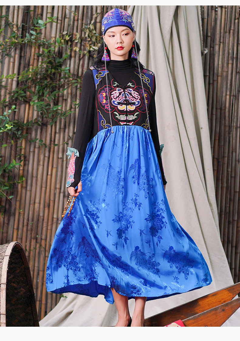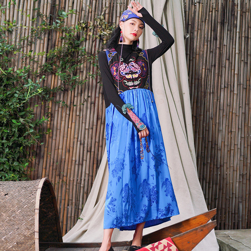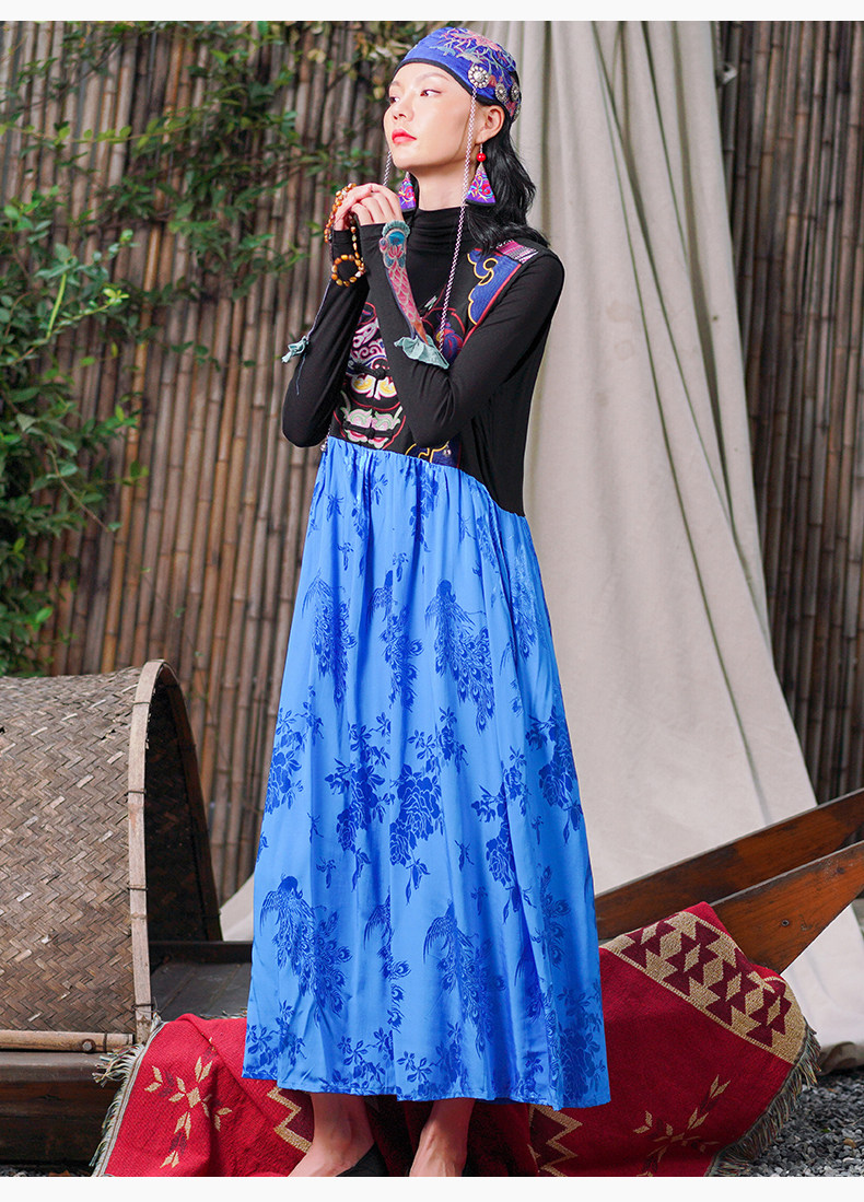 Этническая длинная юбка, платье без рукавов, этнический стиль, с вышивкой, V-образный вырез, А-силуэт